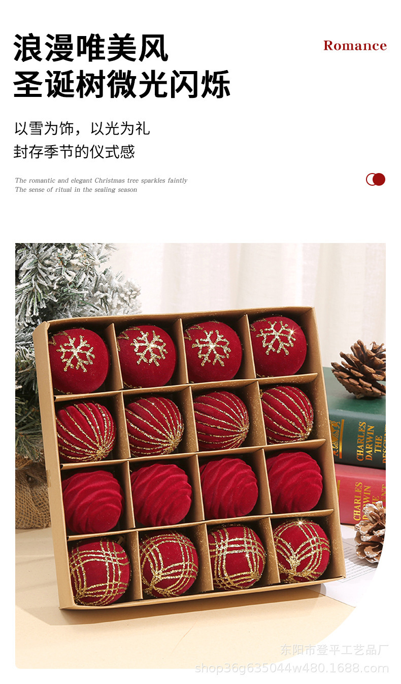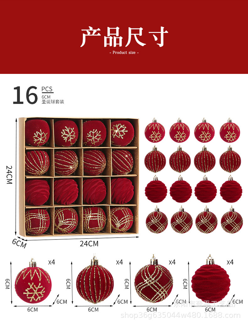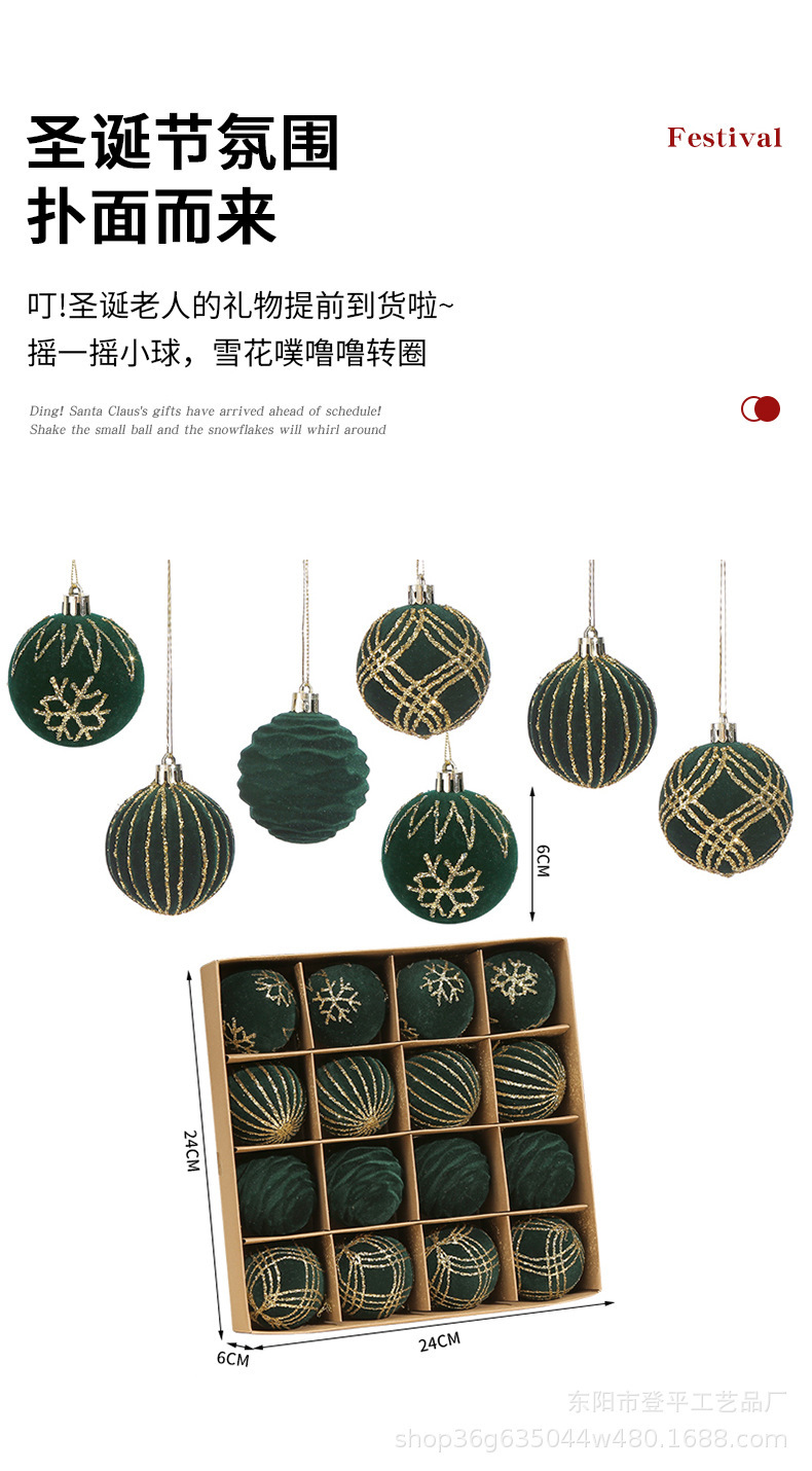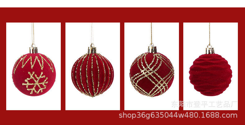 外贸6cm植绒圣诞球挂件套装节日装饰挂件橱窗布置雪花球圣诞树球