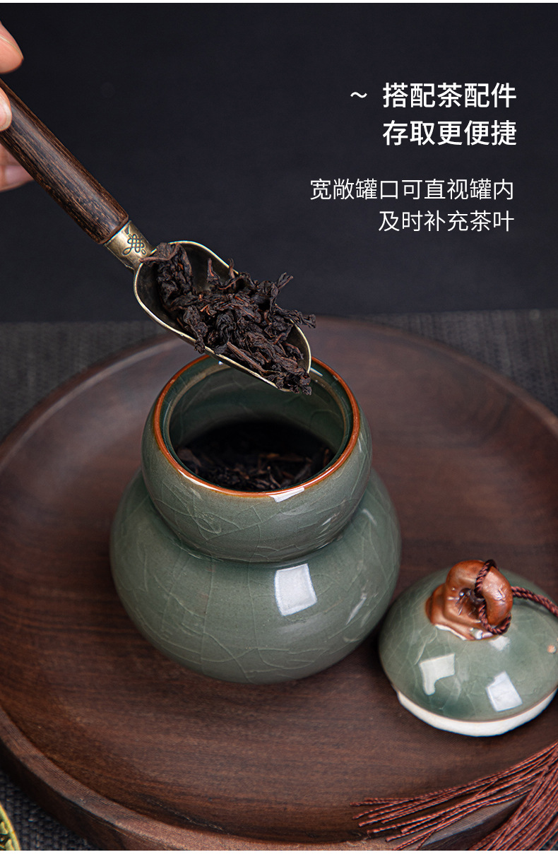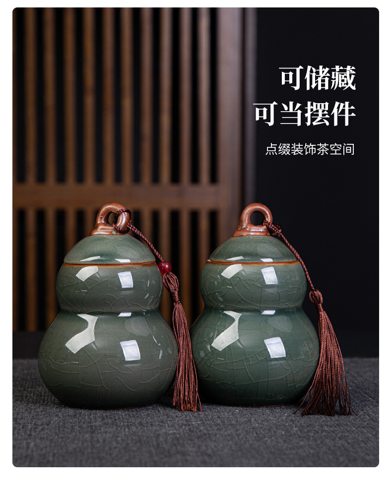 复古青花汝窑葫芦茶叶罐家用陶瓷密封储物罐便携茶仓高档伴手礼物