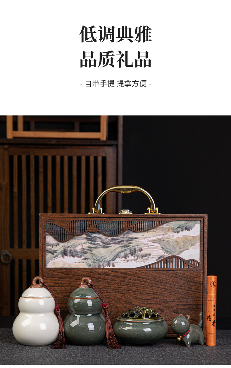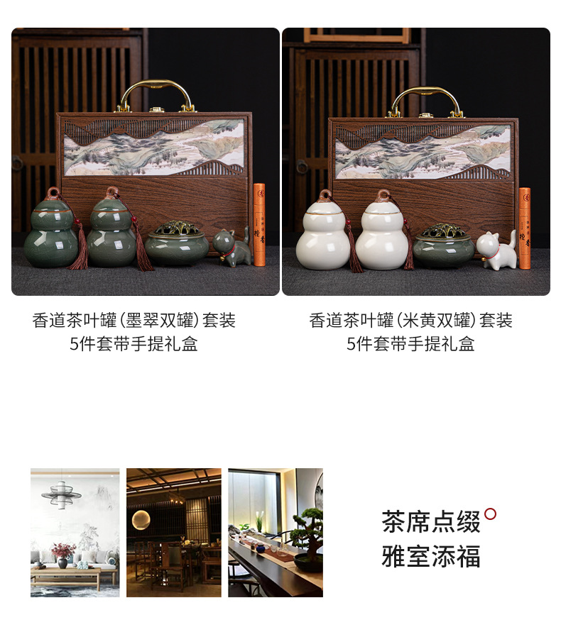 茶叶罐陶瓷密封罐福禄葫芦罐子中药粉存储罐礼盒送长辈礼物商务礼