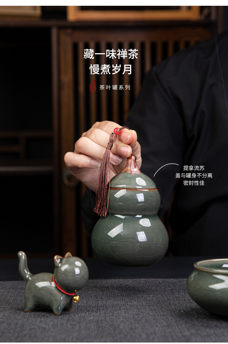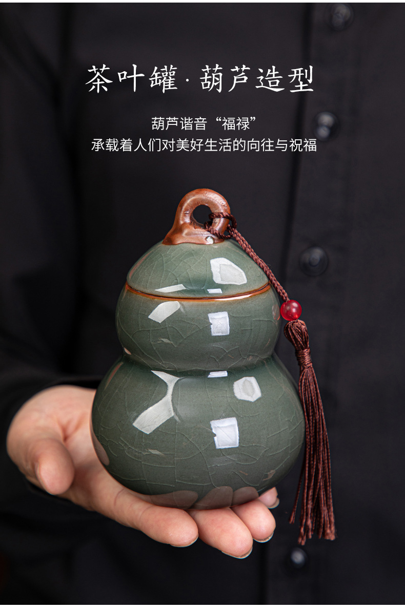 汝窑小号葫芦罐陶瓷防潮密封药粉罐子家用便携旅行储物罐茶仓送礼