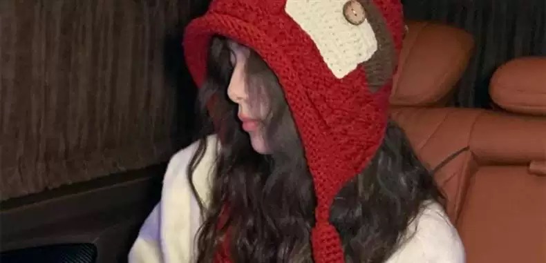 巴拉克拉法帽红色包头帽保暖防风护耳帽子围巾一体小花针织毛线帽