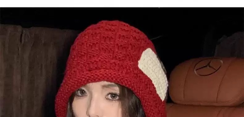 布の標識の小さい赤い帽子の秋の冬の韓国版のニットのフードの小さいマフラーの保温の毛糸の帽子のファッションの百合のニットの帽子の女性