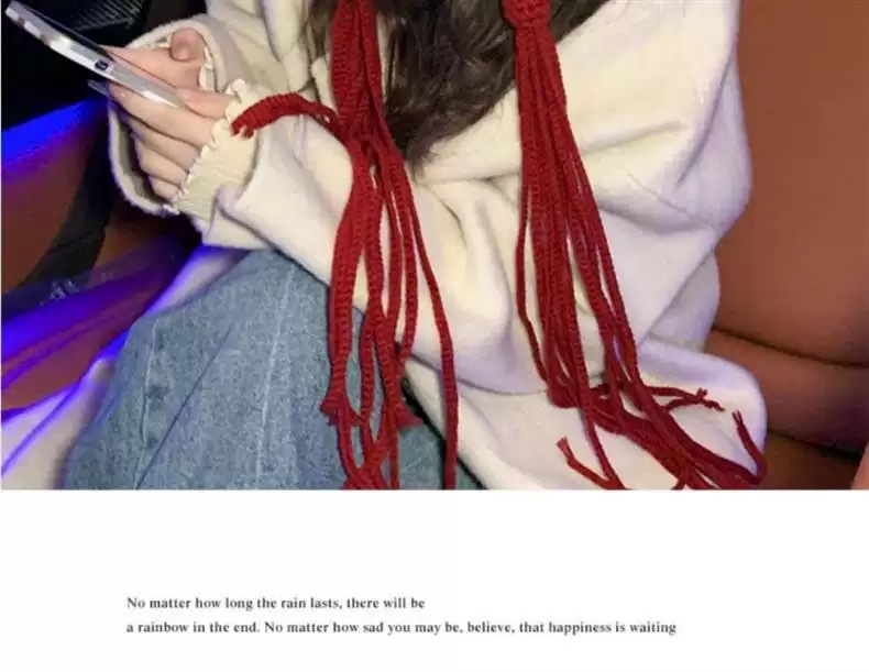 秋冬季保暖手工辫子针织帽潮新款时尚贴布流苏红色毛线帽子女
