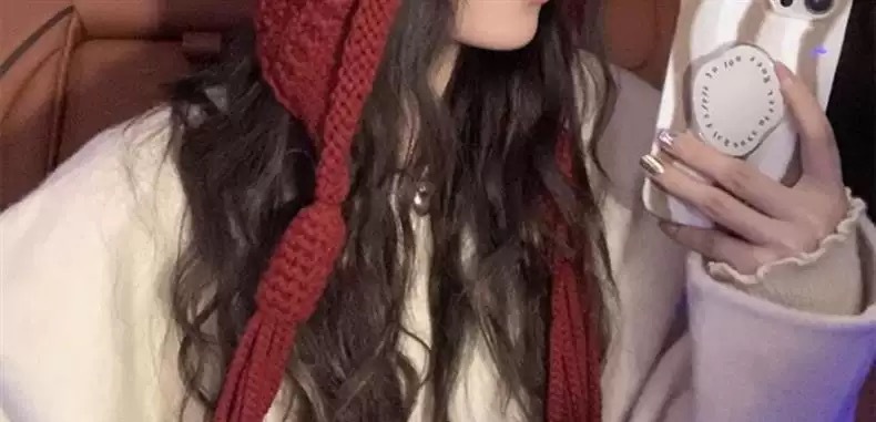 升级红色巴拉克拉法帽女连帽围脖秋冬季披肩针织毛线帽子围巾一体