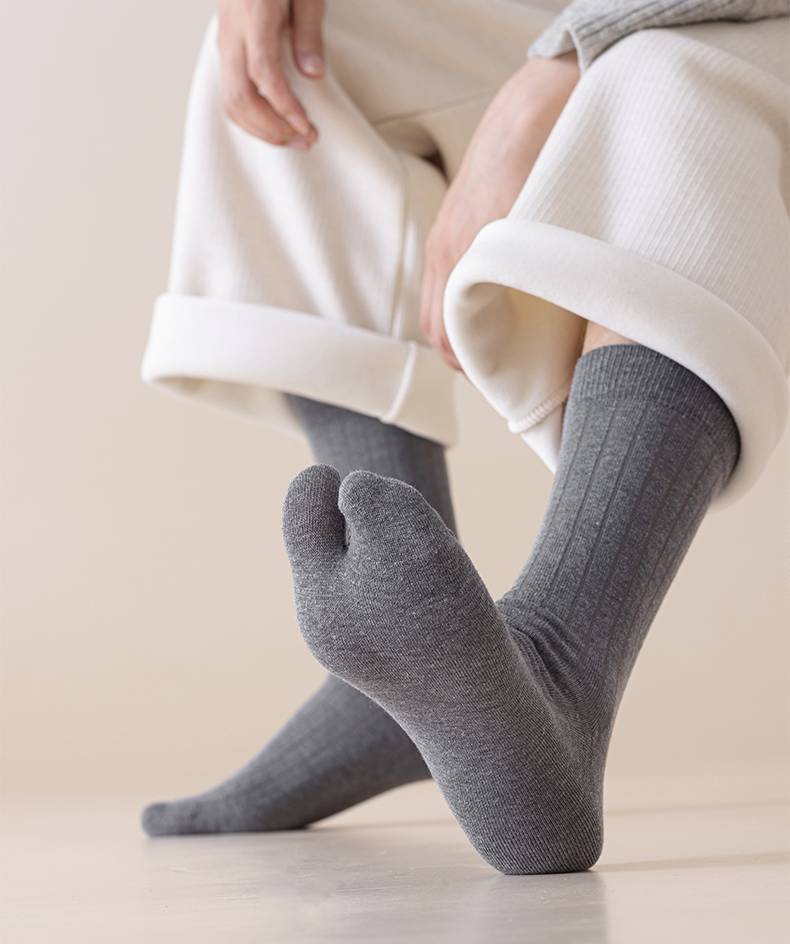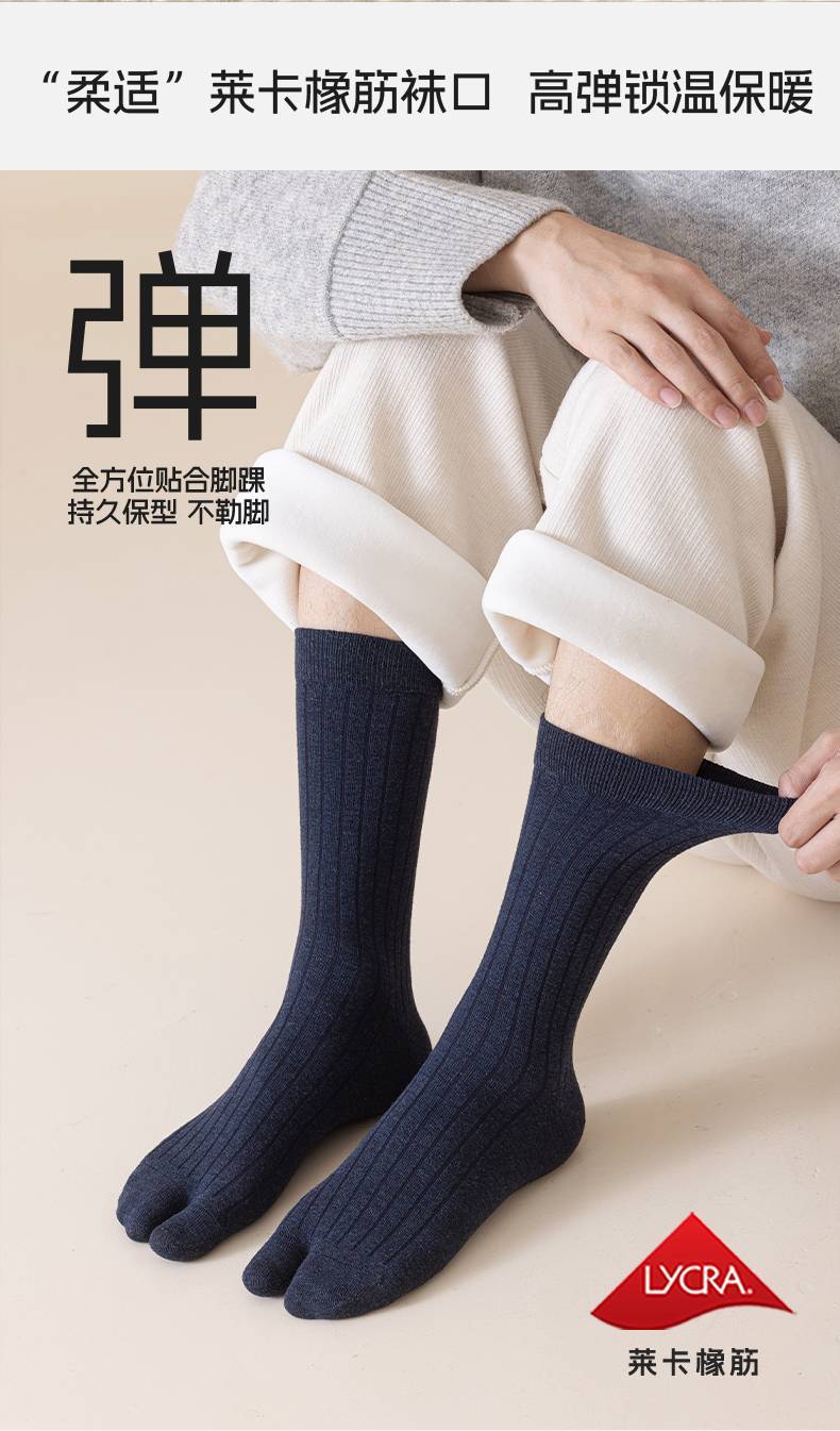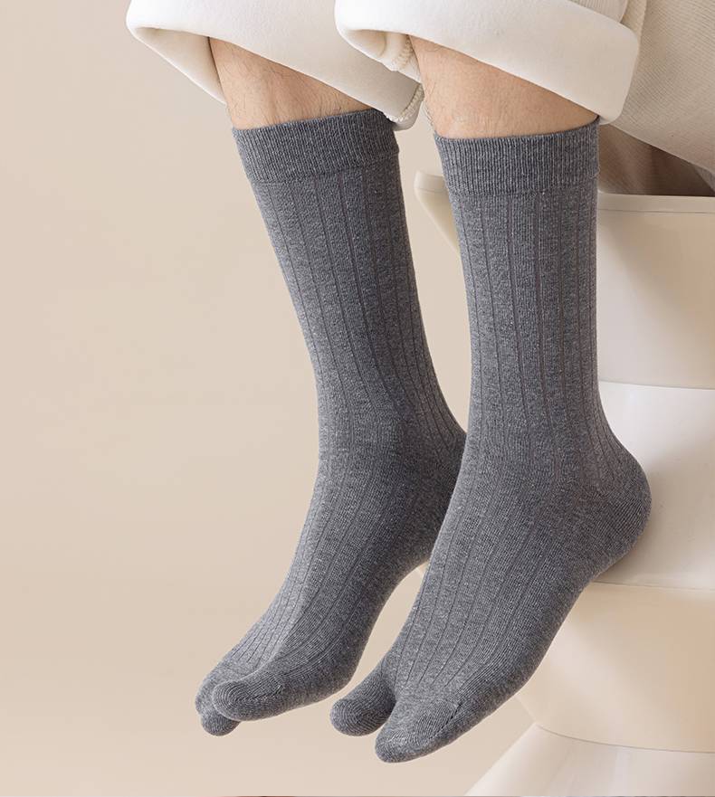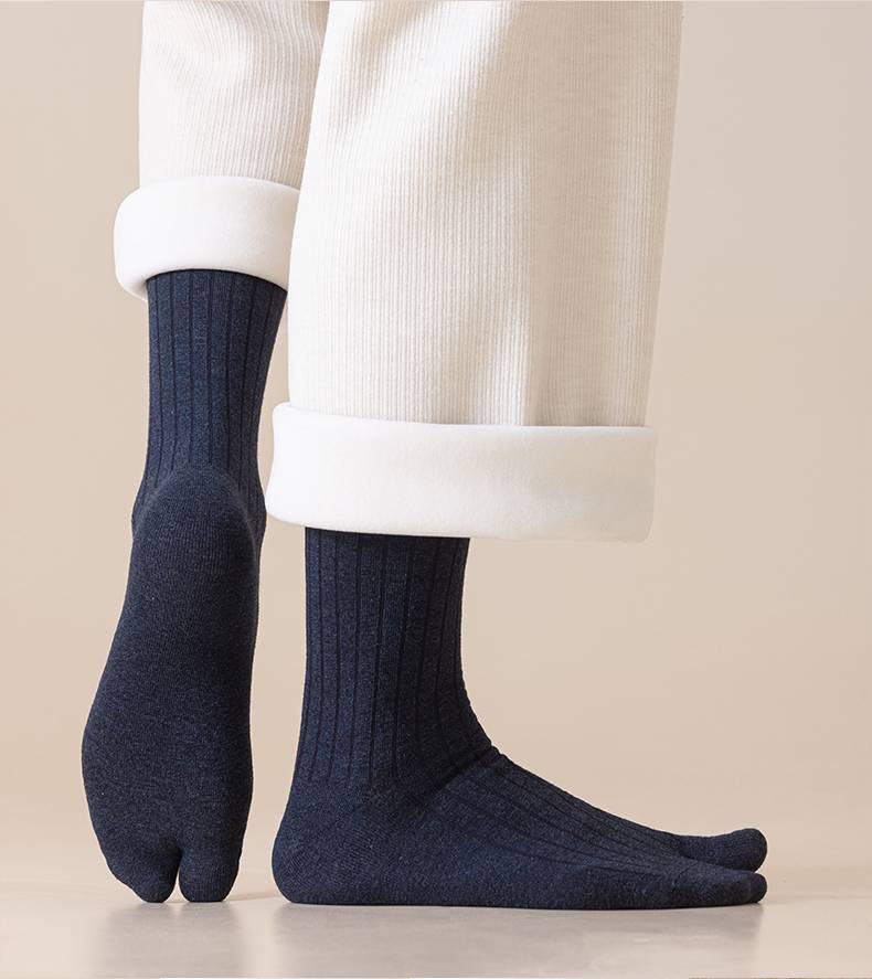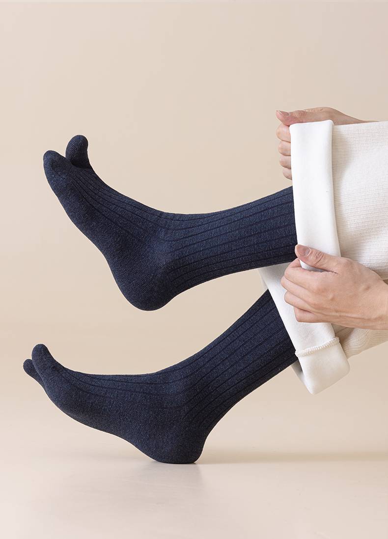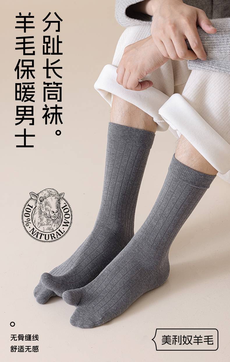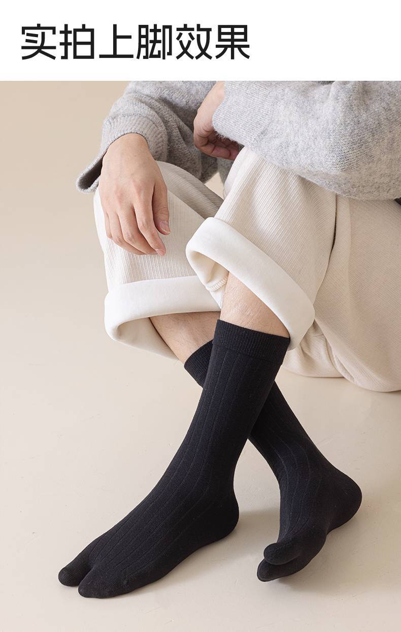 羊毛二趾袜男加厚保暖两指袜防大拇指外翻脚趾袜秋冬长筒分趾袜男