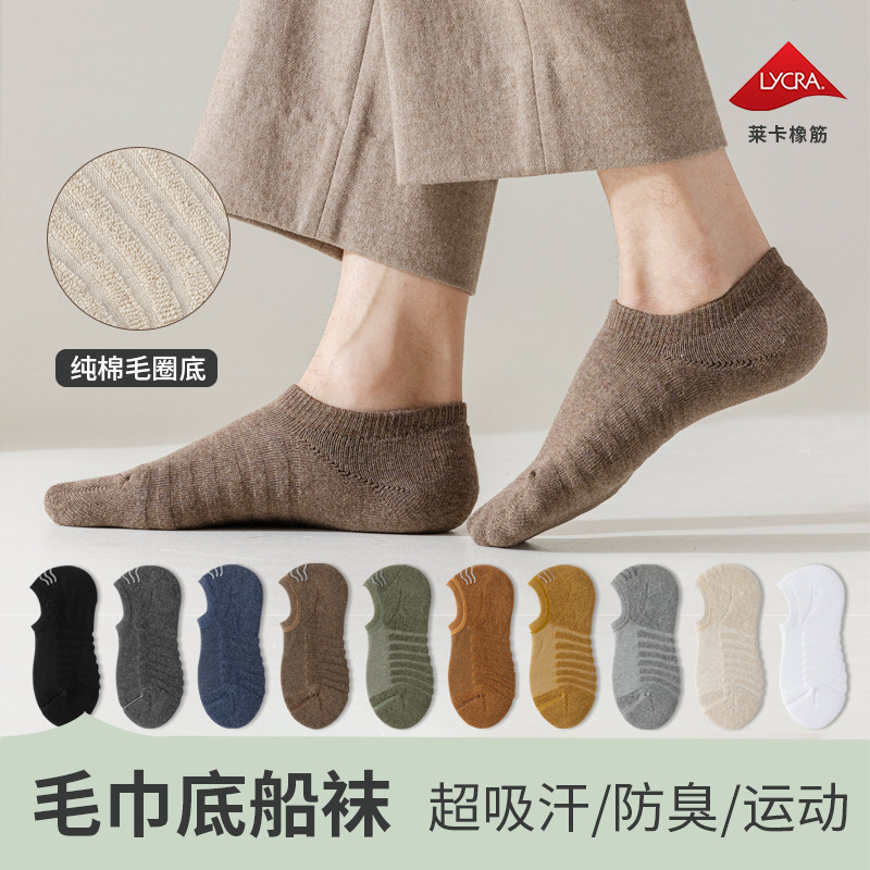 ボートソックス メンズ 純綿 増粘テリーボトム 吸汗消臭 浅口ソックス 10A 抗菌 四季 タオル底 インビジブルソックス
