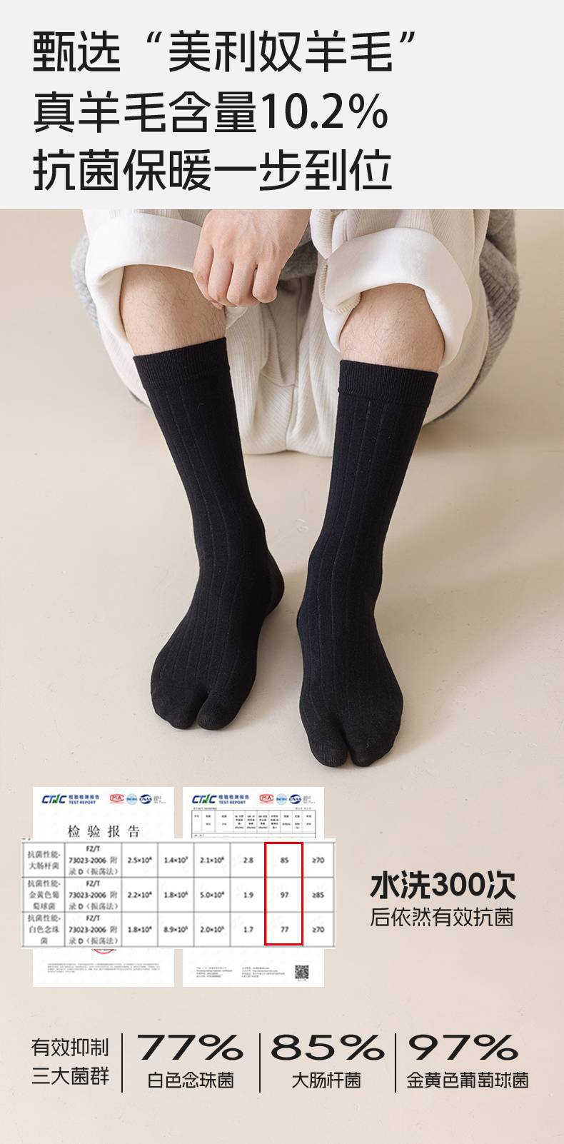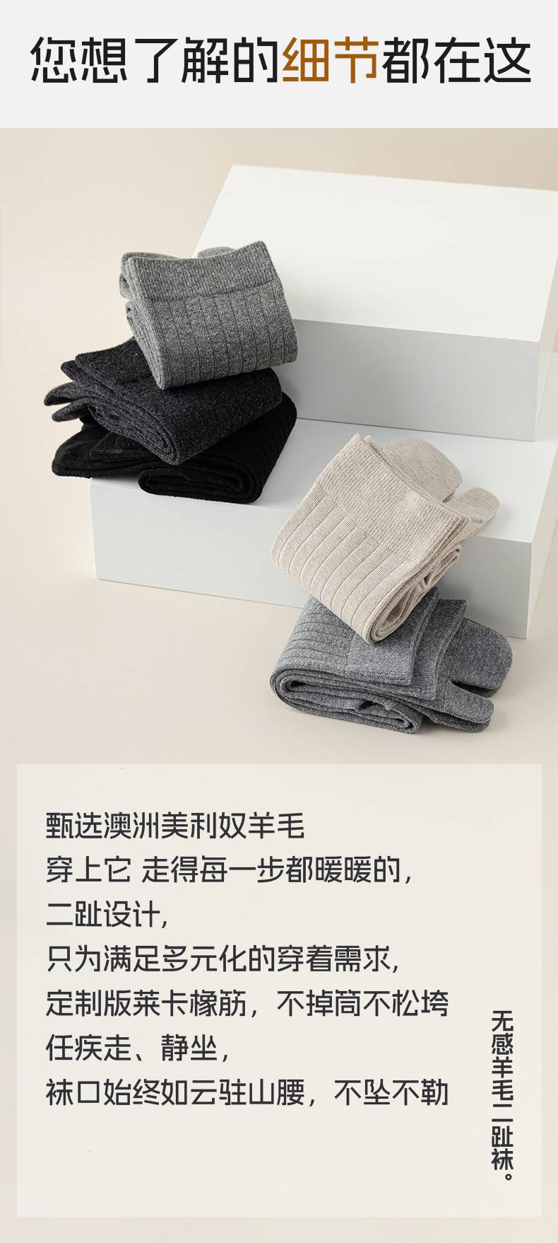 羊毛二趾中长筒两指袜子女分指袜秋冬款木屐猪蹄保暖分脚趾抗菌袜