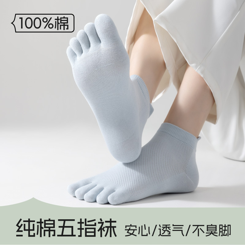 靴下の女性春秋日本系純色綿質の指の靴下の薄いタイプの人の字は防臭します。