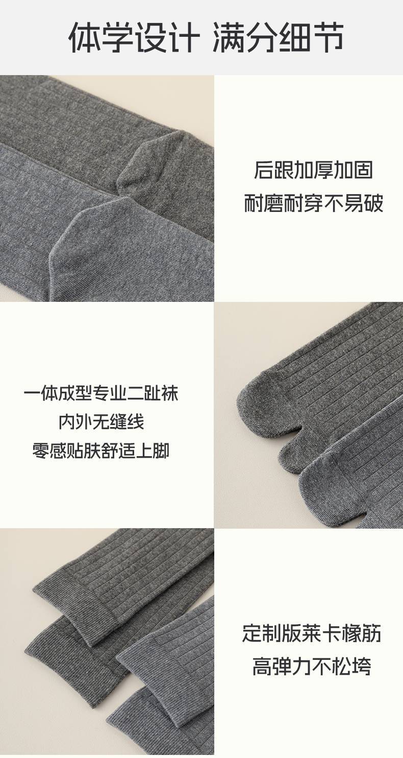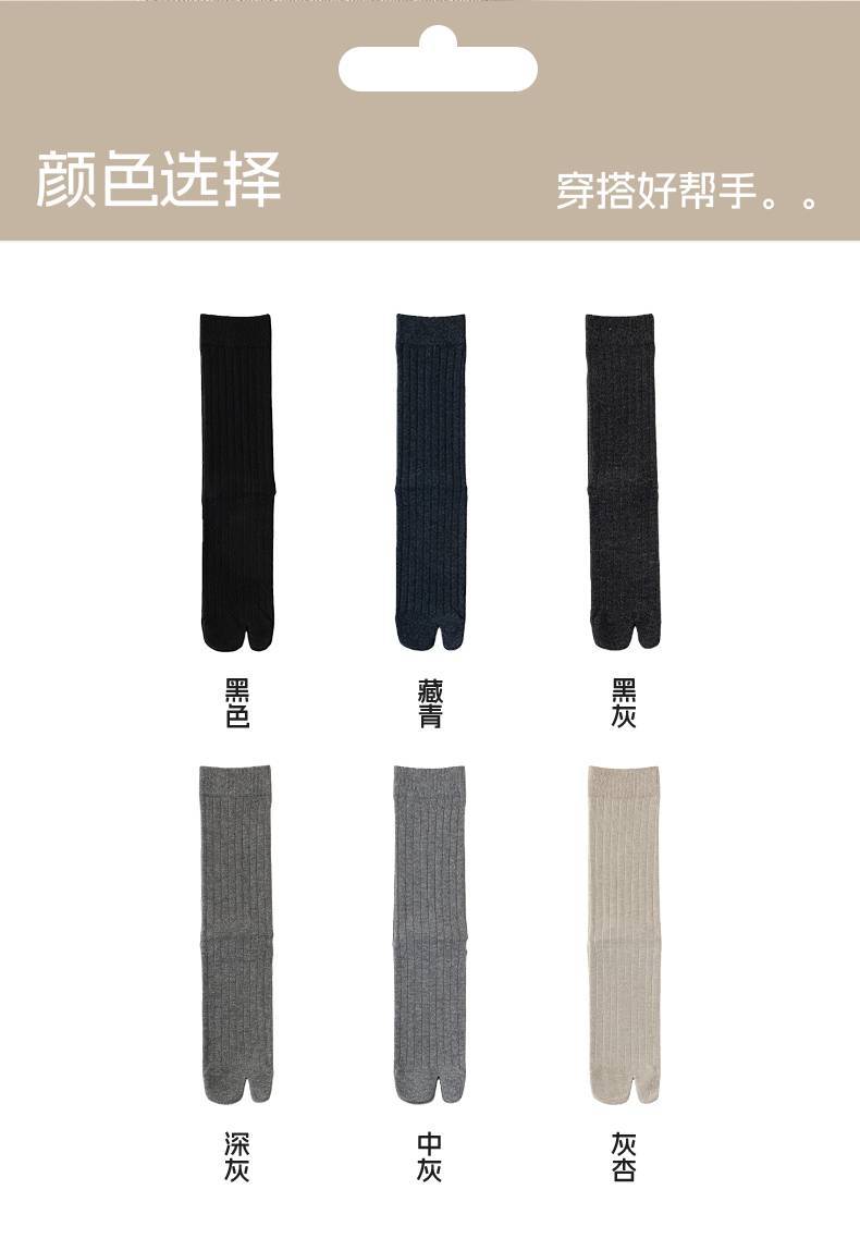 95%棉二趾袜子女春秋大地色分趾纯色中筒无骨抗起球纯棉木屐猪蹄