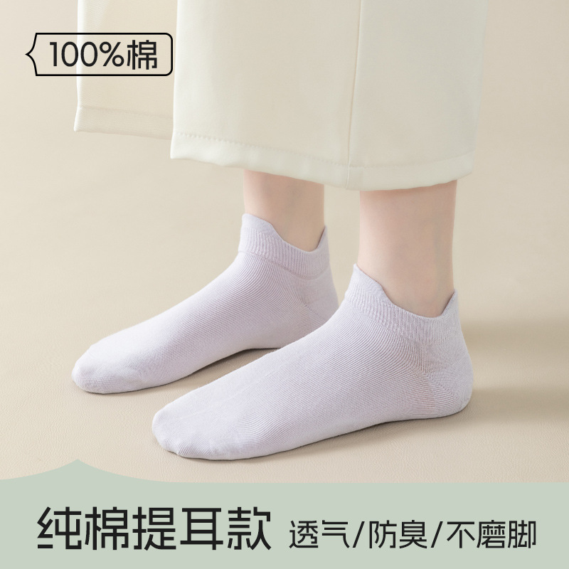 女性用靴下、夏用純綿靴下、耳持ち防止、女性用靴下、防臭・吸汗性ボートソックス、ヌードソリッドカラー綿ショートソックス