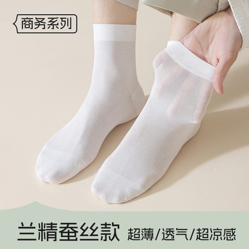マルベリーシルクソックスメンズ極薄ビジネスソックス涼しく通気性のあるミッドカーフソックス夏用抗菌防臭ボンレスメンズソックス