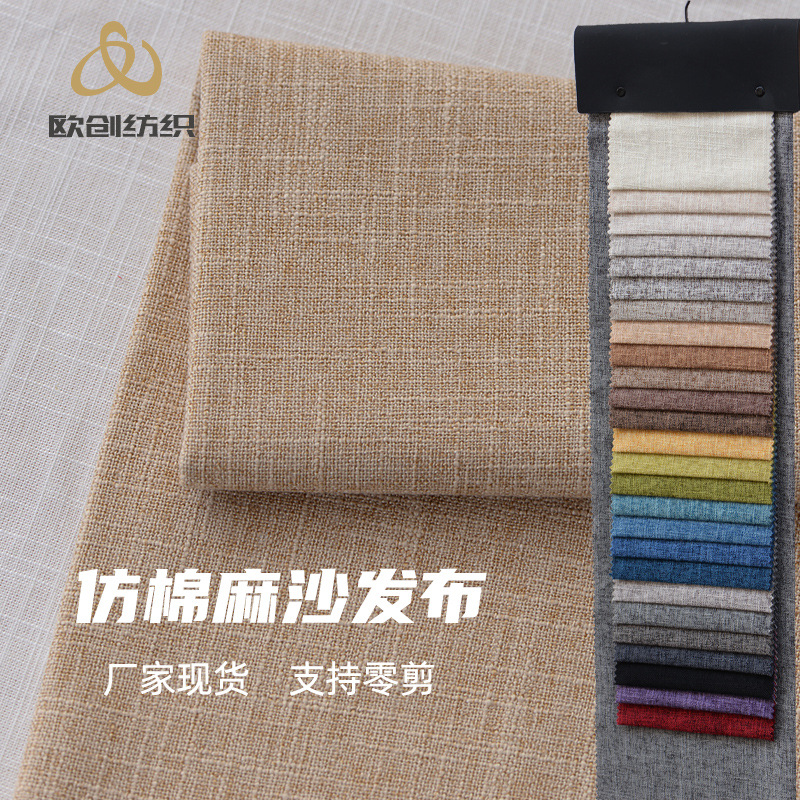 竹节麻全涤仿麻布可加工防水涂层淋膜沙发布窗帘布靠枕软包