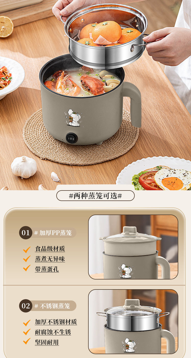 批发代发电煮锅宿舍小型泡面锅家用电炒锅多功能蒸煮一体电热火锅