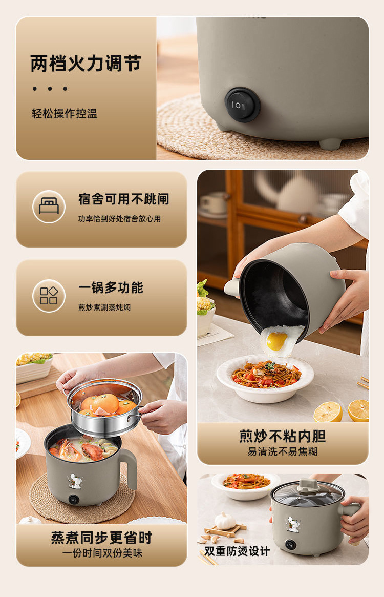 跨境爆款学生宿舍不沾1-2人电炒锅多功能煎炒蒸煮一体电煮锅礼品