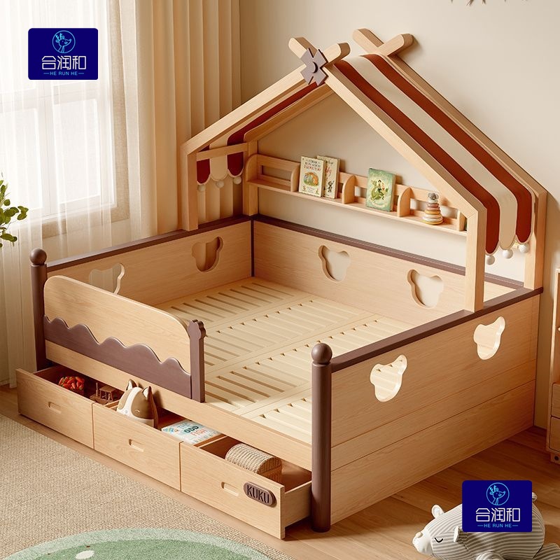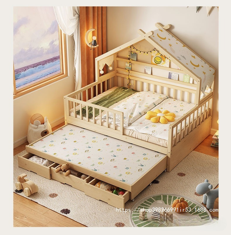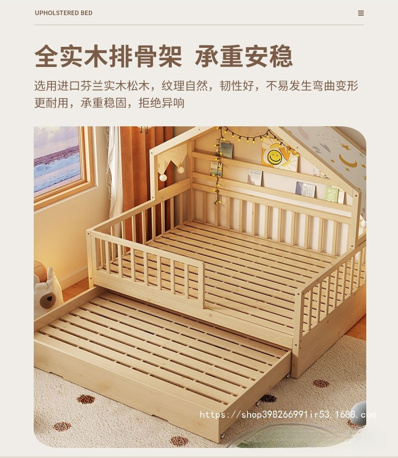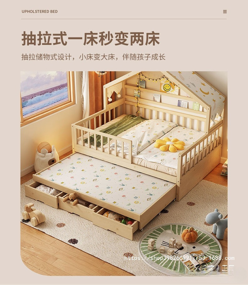 全实木儿童床女孩公主床小床带拖床护栏家用宝宝单人床男孩树屋床