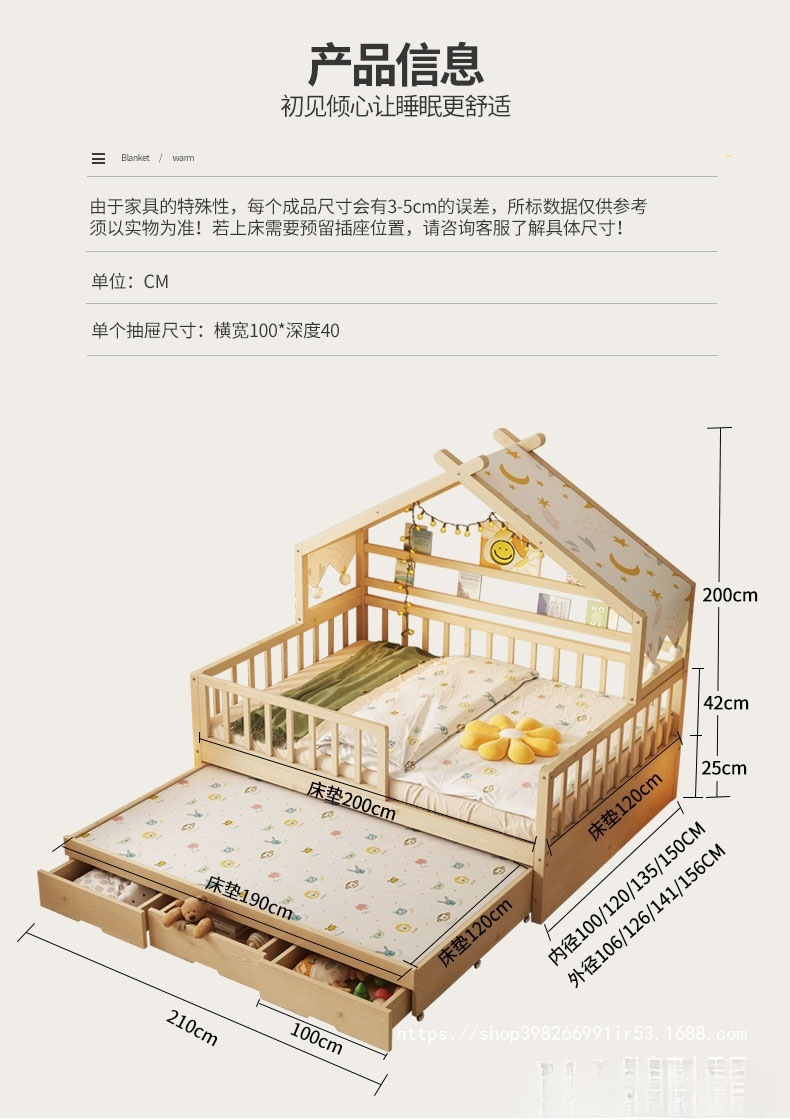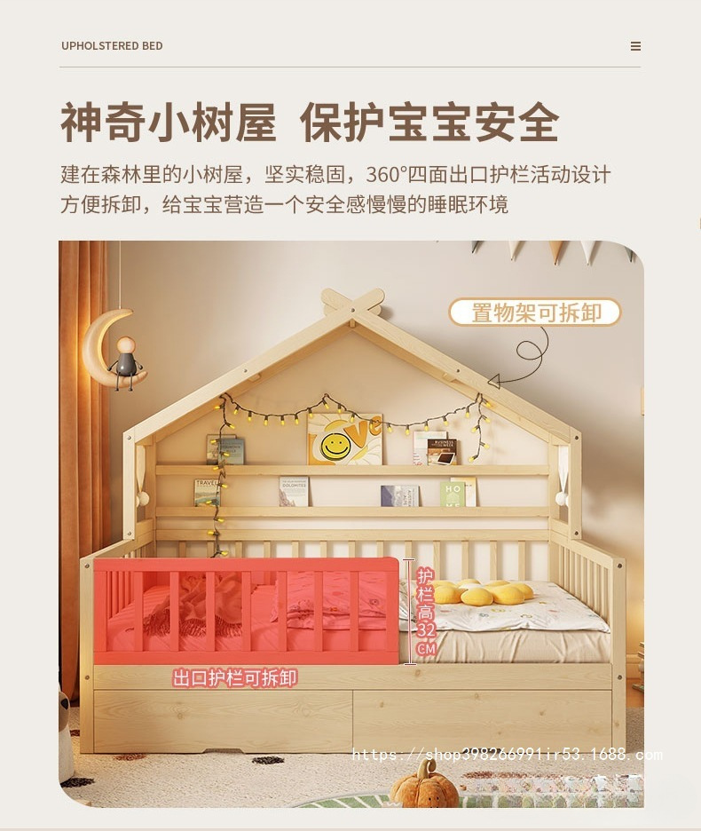 全实木树屋床儿童床男孩女孩公主床小床带拖床护栏家用宝宝单人床