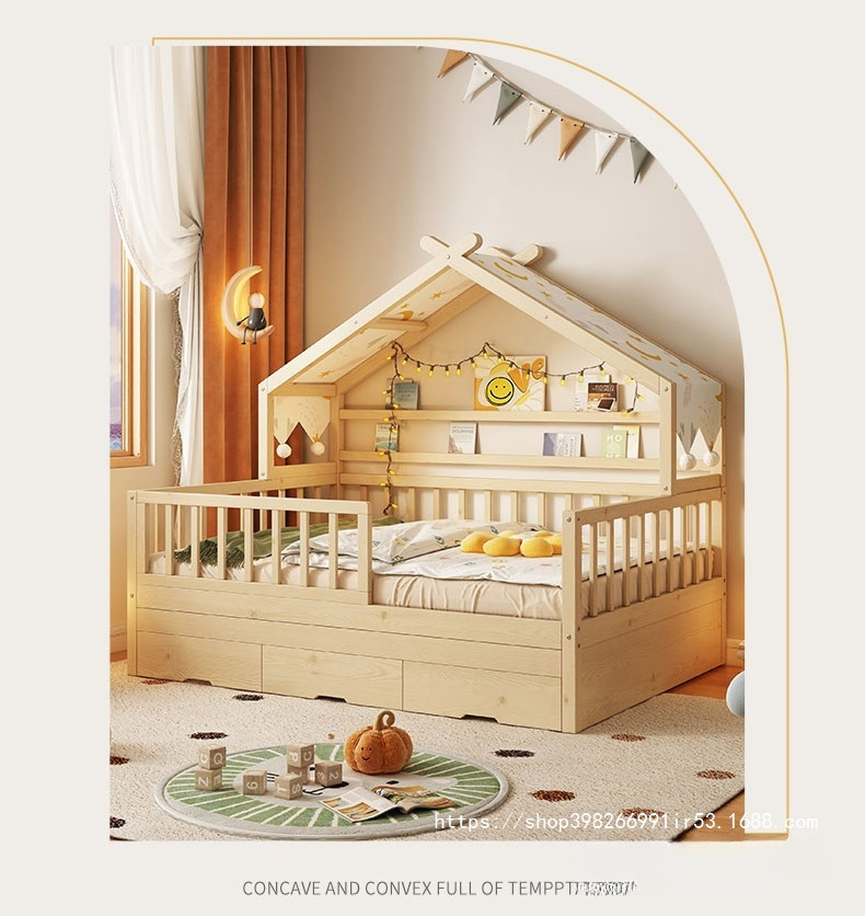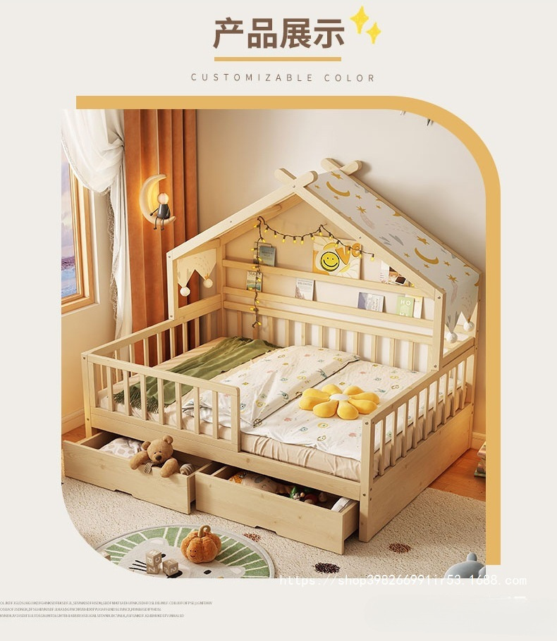 全实木童趣造型宝宝床梦幻城堡儿童房小床床实木床帐篷高床带护栏