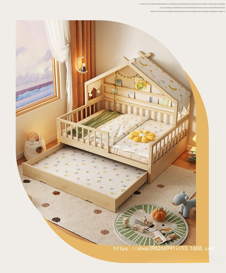 实木儿童床可伸缩加高蒙氏地板床男孩女孩小户型侧面抽拉床