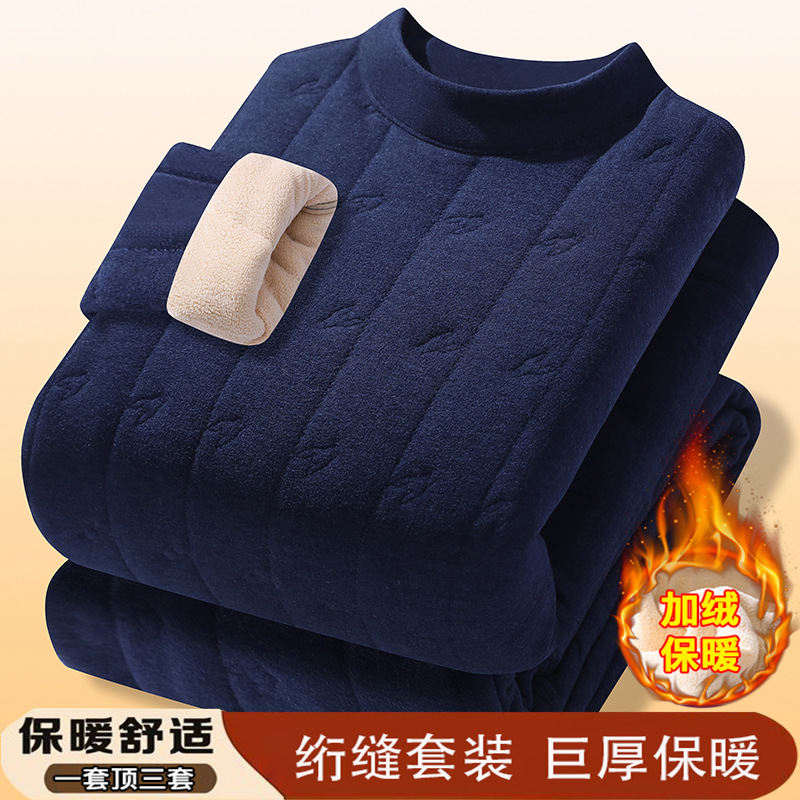 2024新型ビジネス徳絨秋衣秋ズボン加毛保温下着男性スーツ