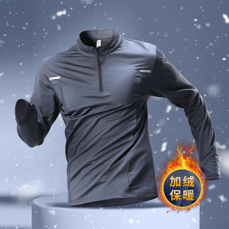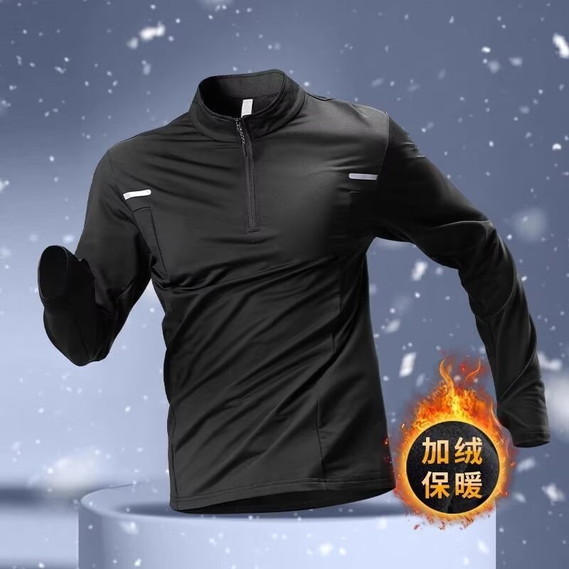 冬季半拉链训练服男加绒保暖速干衣长袖秋冬跑步上衣户外运动t恤