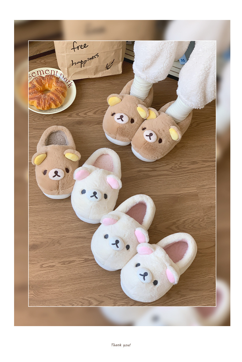 轻松熊棉拖鞋女可爱冬季外穿男女情侣防滑家居室内保暖棉鞋代发