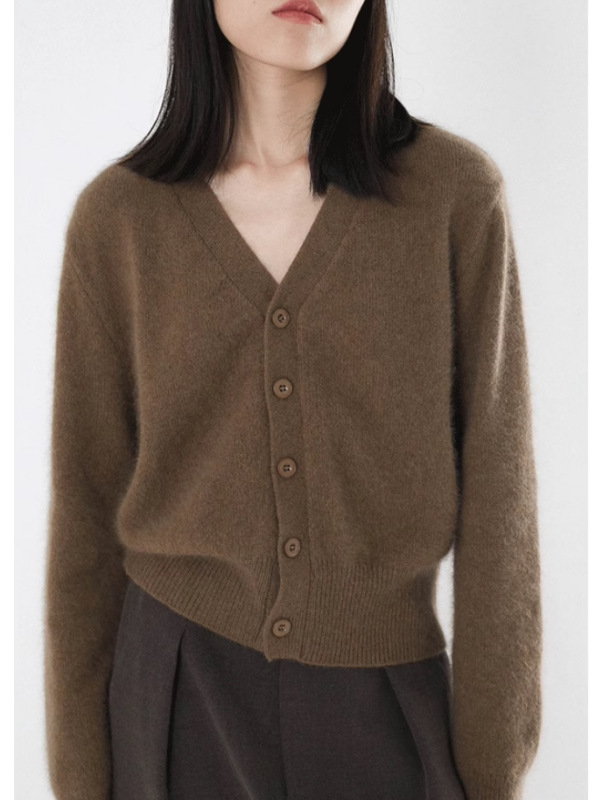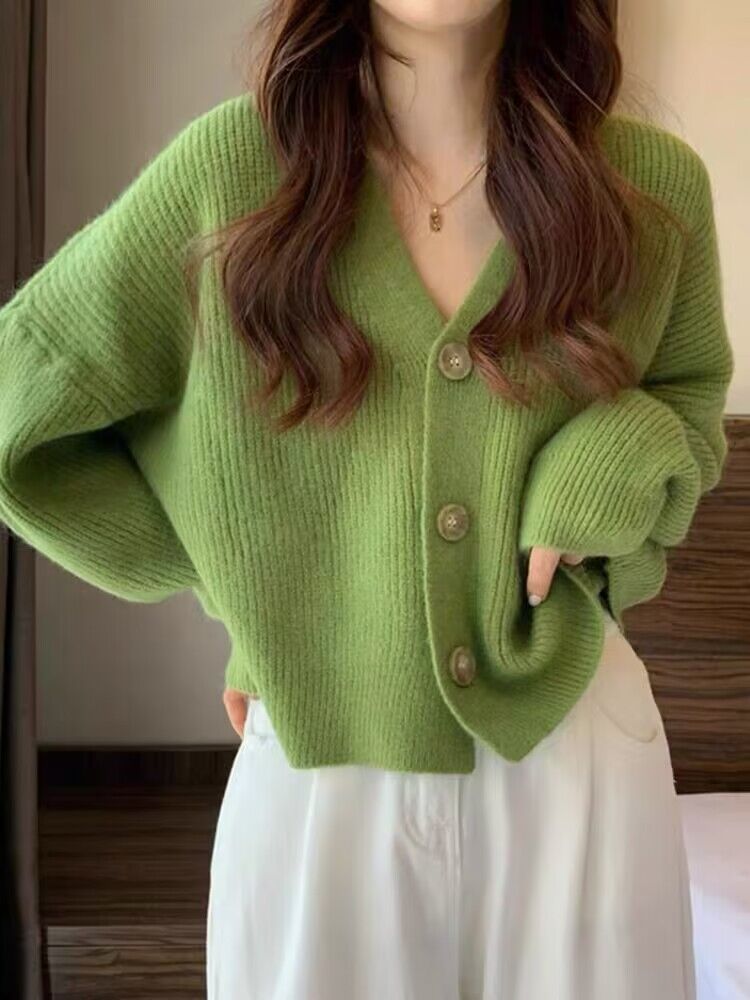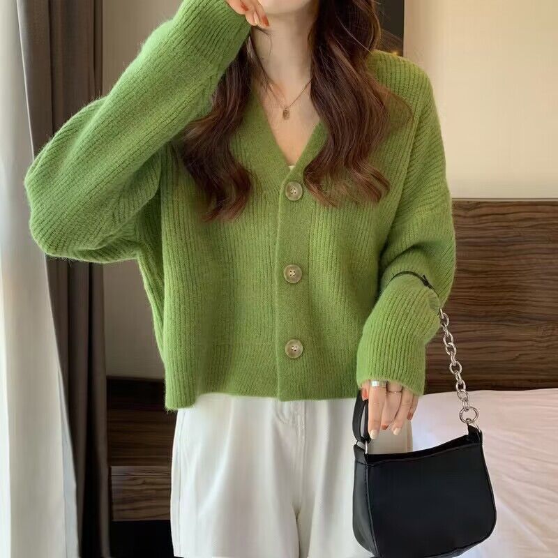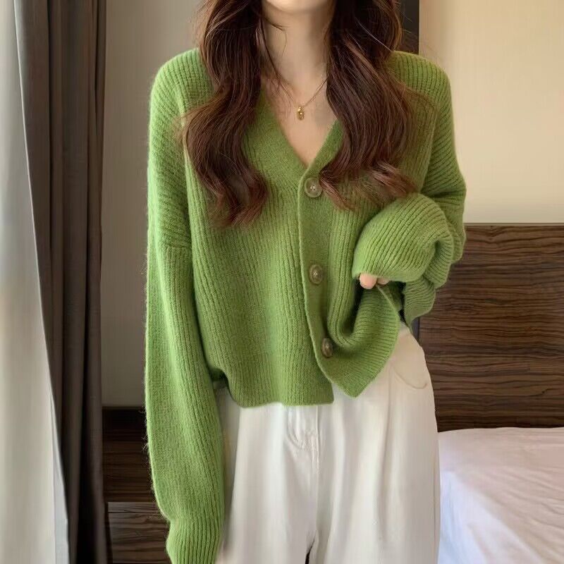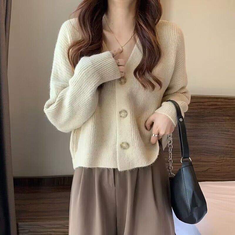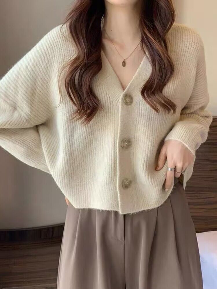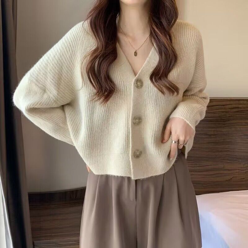 25 春と秋のカシミア カーディガン レディース ルーズ ショート セーター ジャケット ソフトでワックスのようなセーター 多用途でスリムな気質