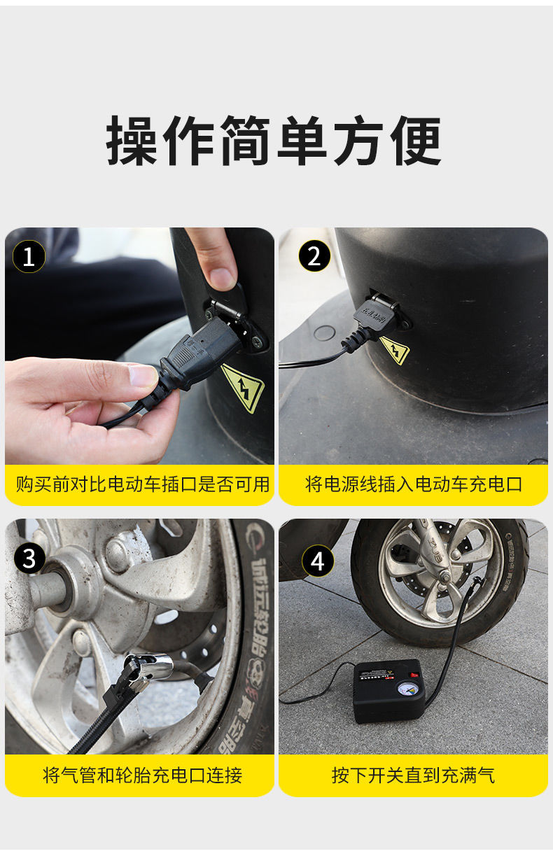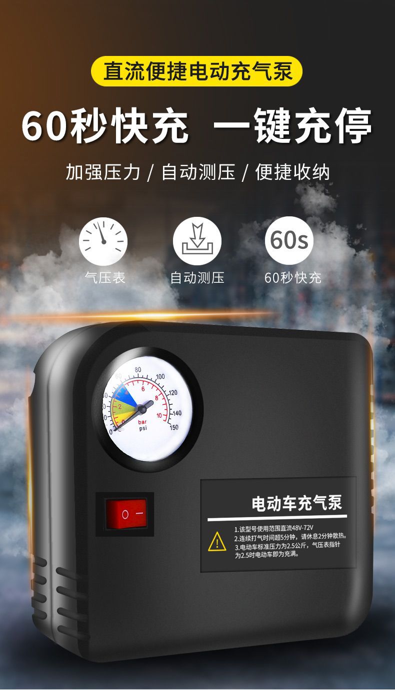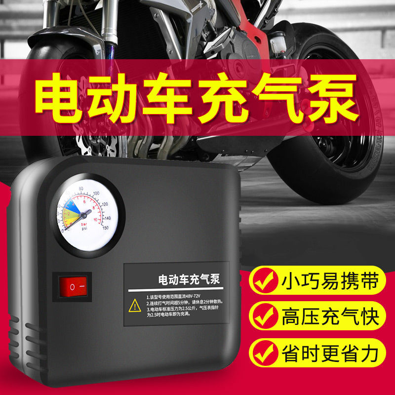 电动打气筒电瓶车充气泵汽车车载打气泵便携式自行车家用带气压表