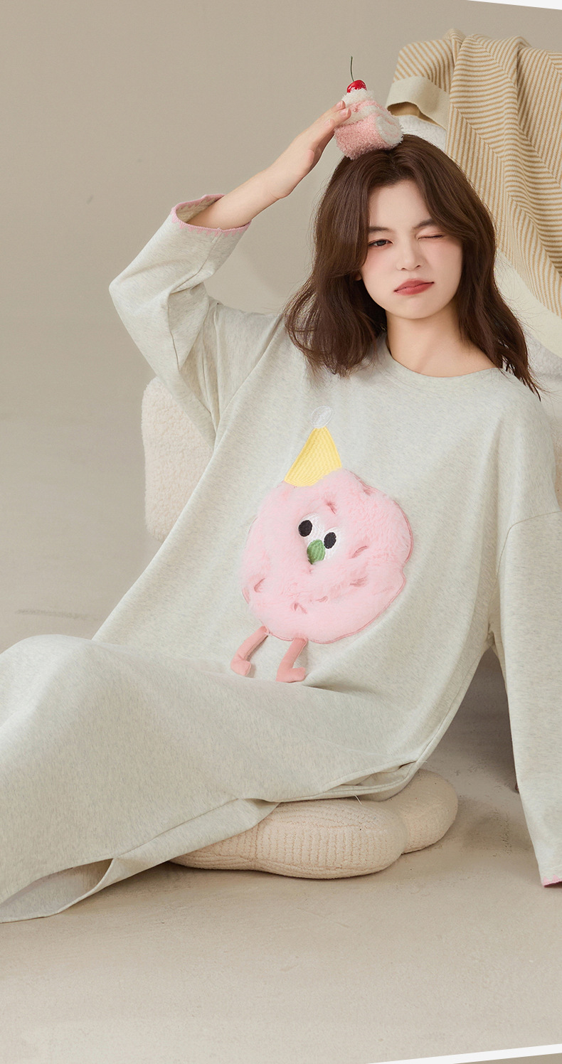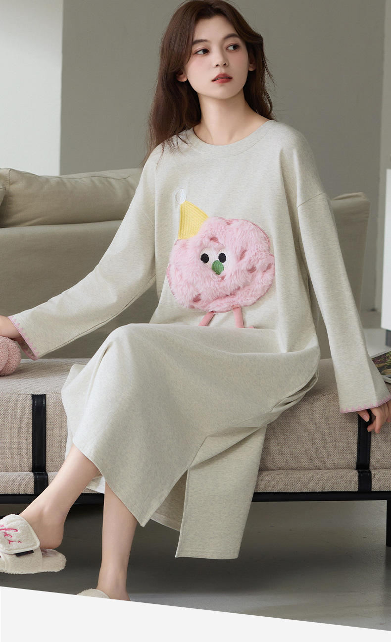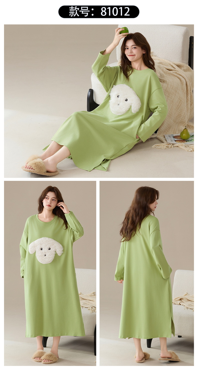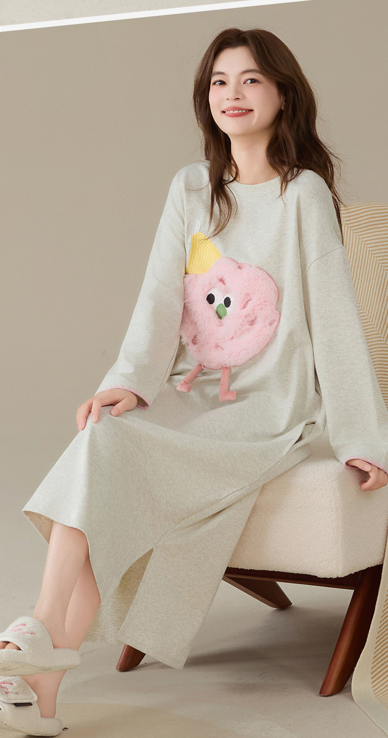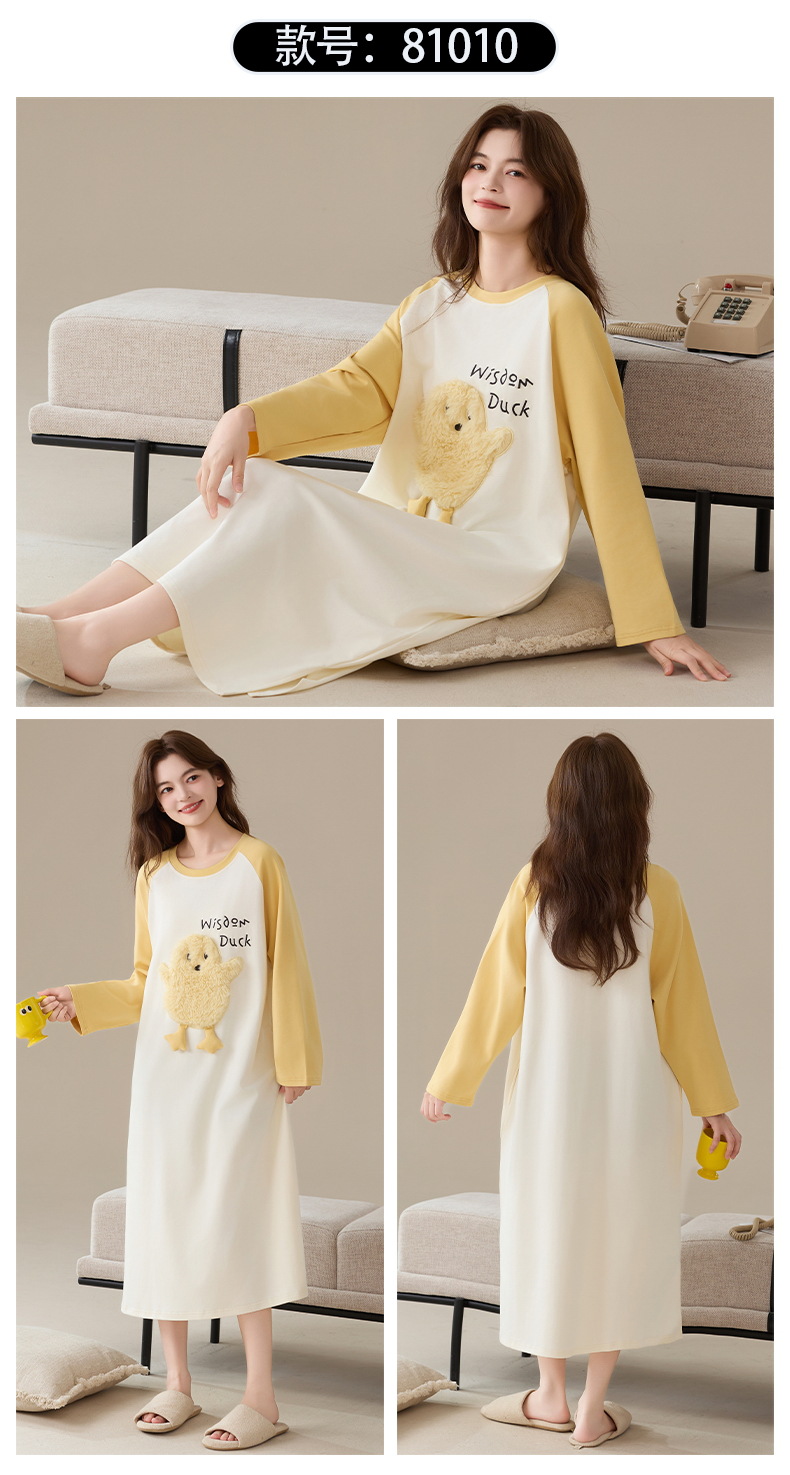 100%纯棉睡裙女长袖韩版甜美卡通宽松简约休闲女新款家居服连衣裙