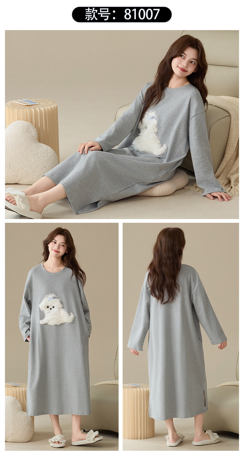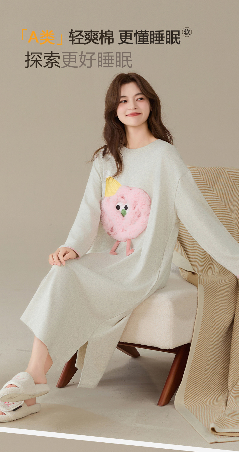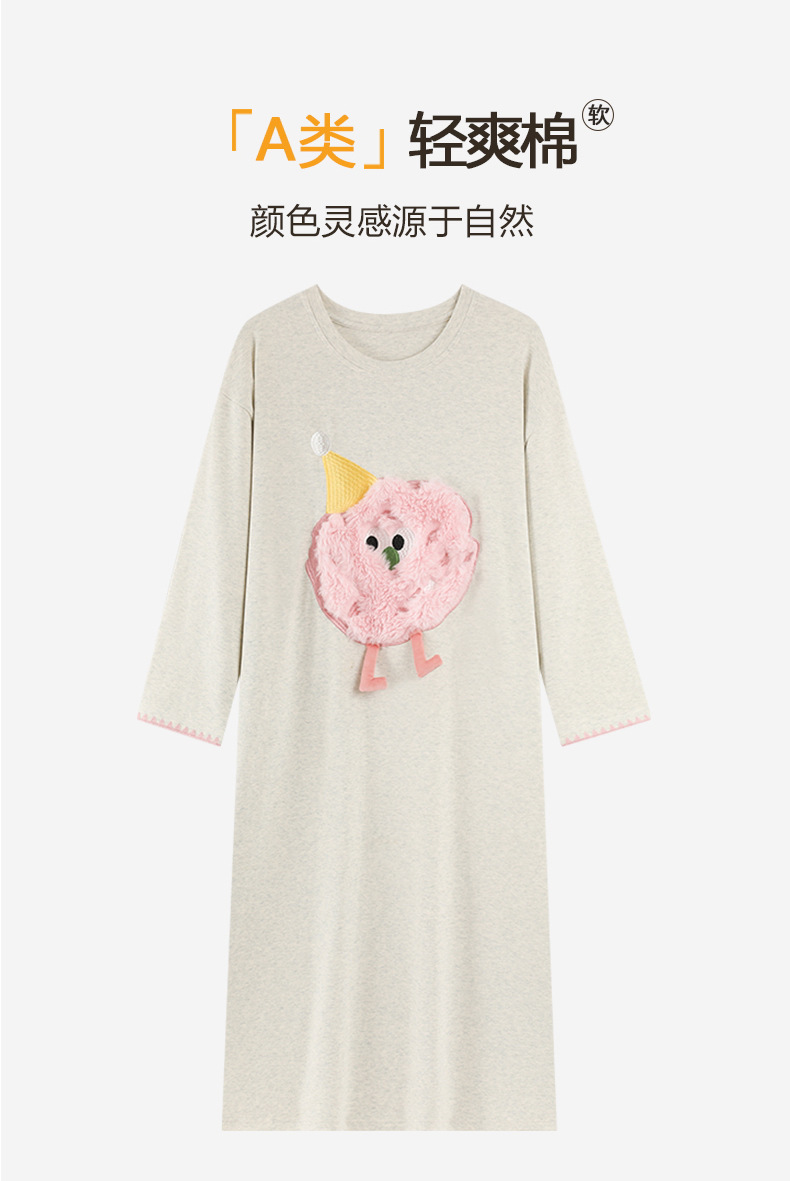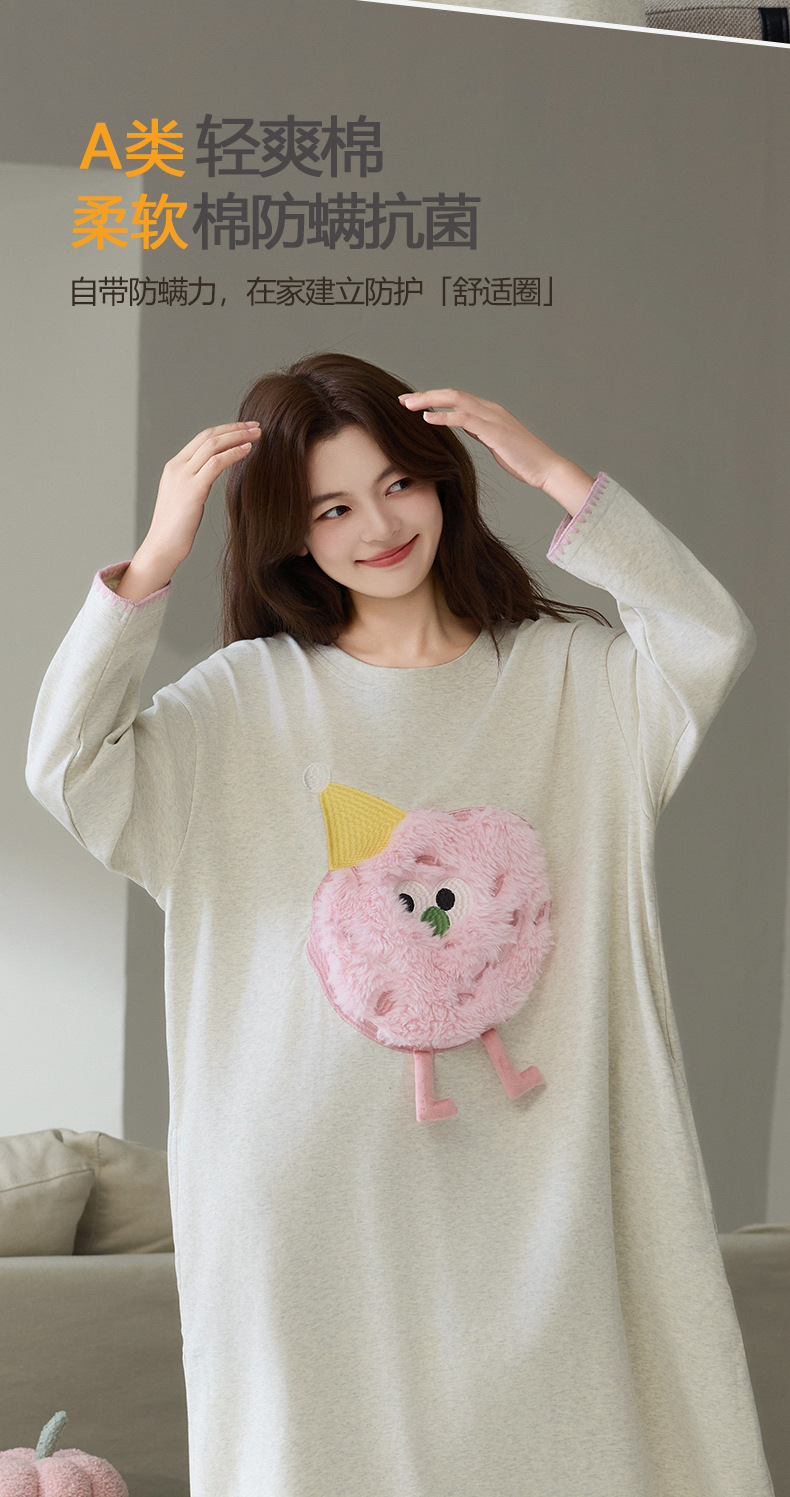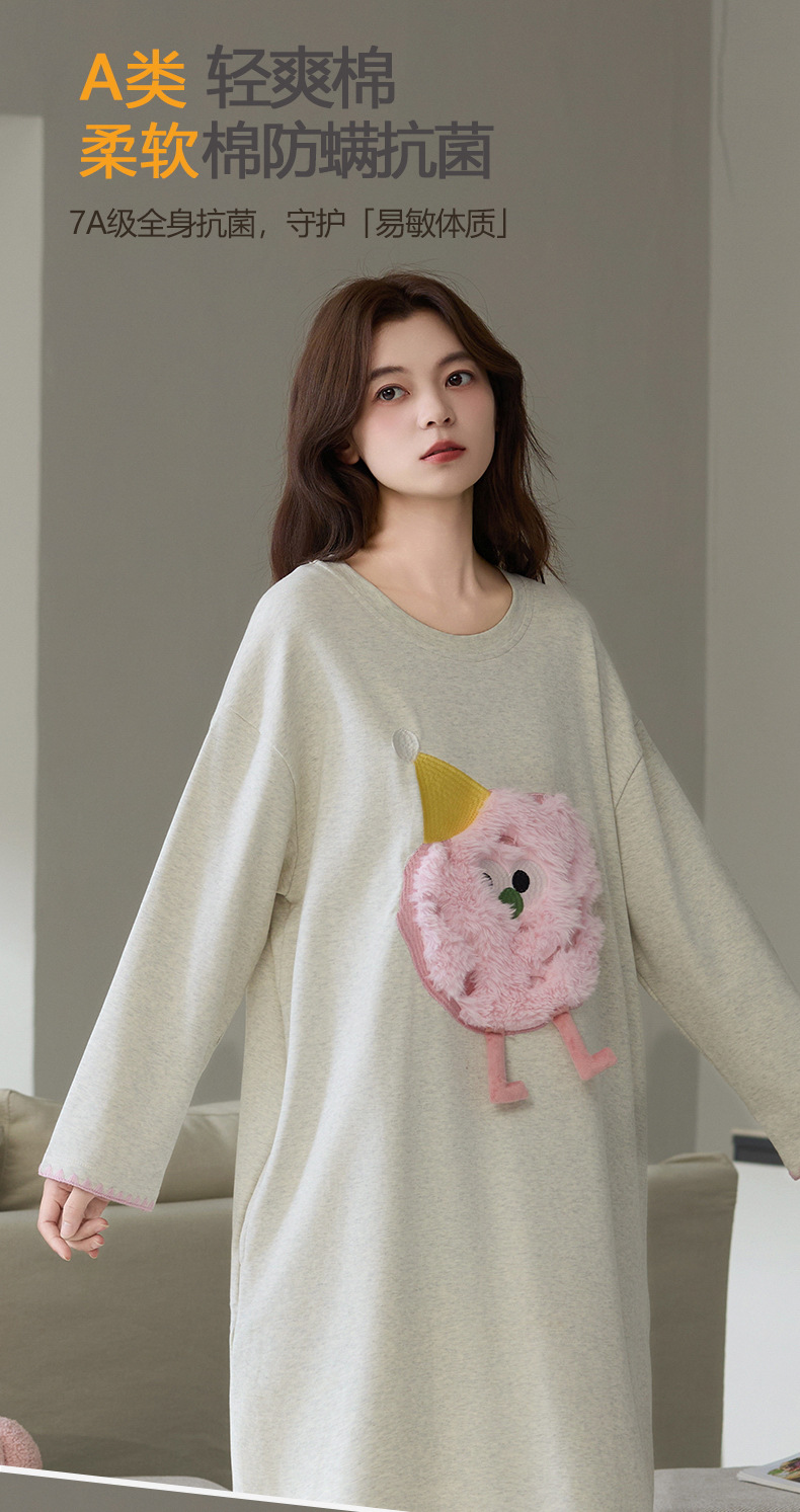 A类抗菌 爽棉长袖睡裙女甜美卡通少女新款时尚纯棉加大码连衣裙秋