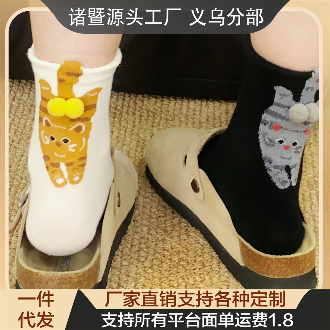 夏スポット抽象立体猫卵ソックスミッドチューブソックス女性用かわいい面白い猫イン日本製ストッキング女性用