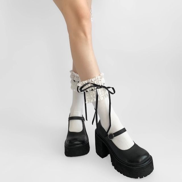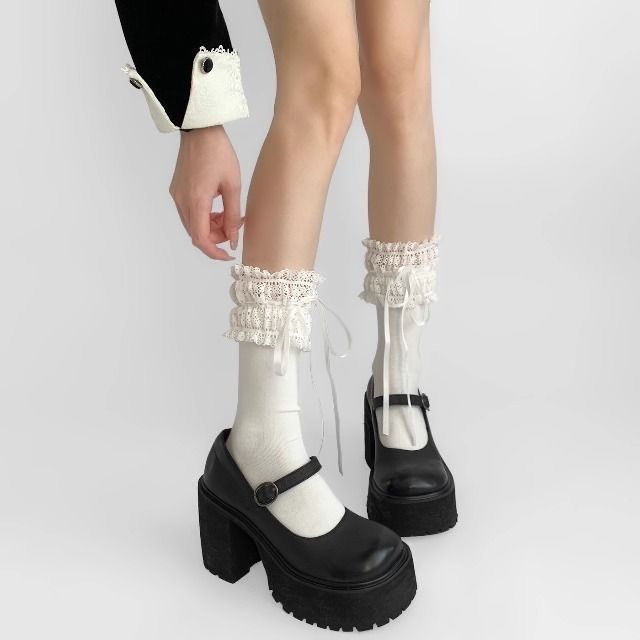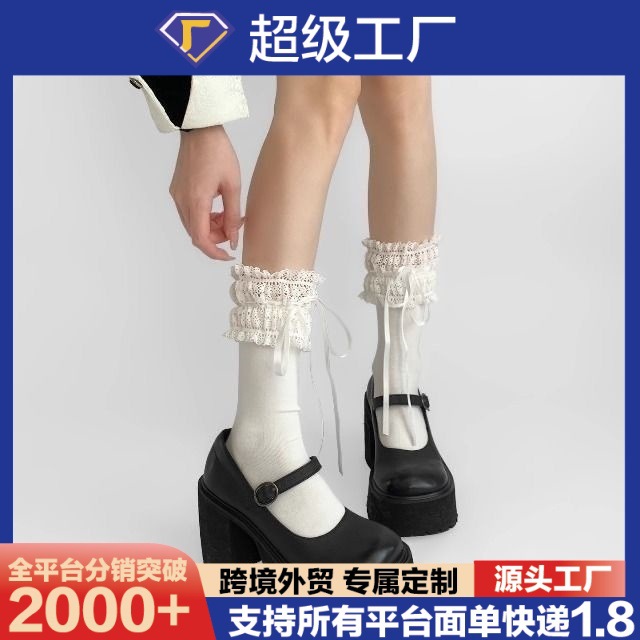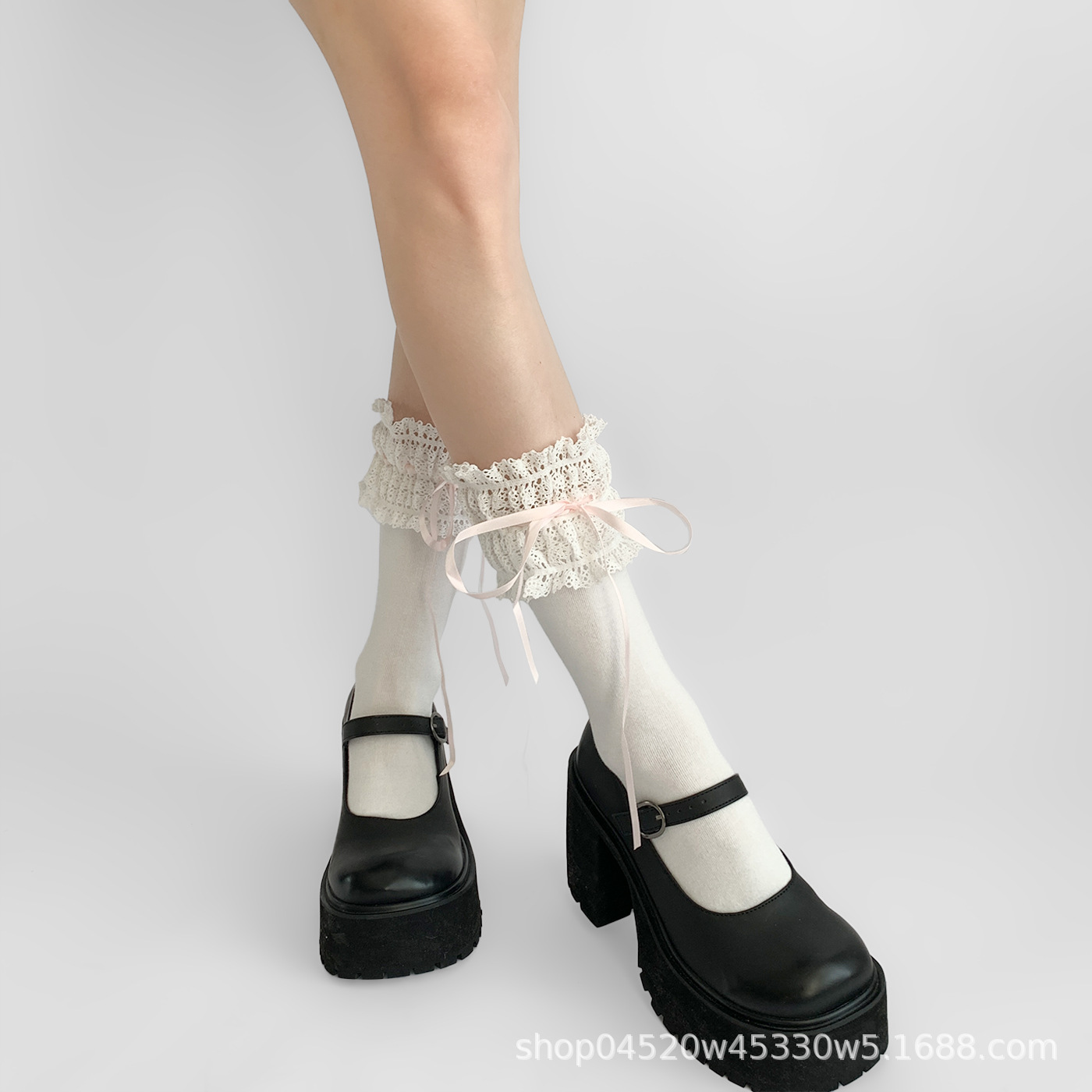 夏日本ロリータレースプリンセスソックス女性の白ミッドカーフソックス女性のリボンレース jk 薄い甘い