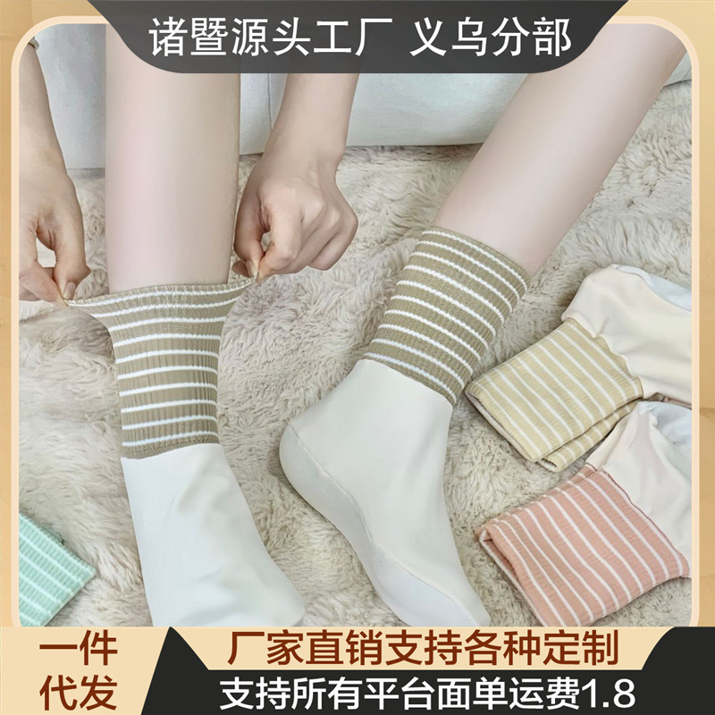 春夏の大きいサイズの女性用エアコンソックスストライプヨモギルーズ口吸湿性と発毛しにくいカップルインミッドチューブソックス