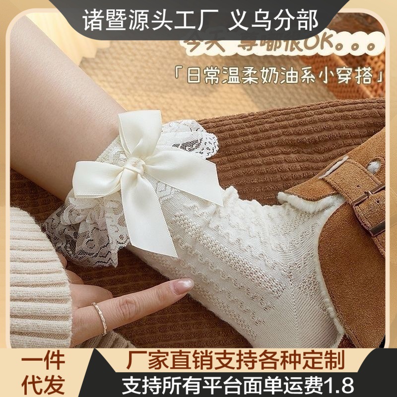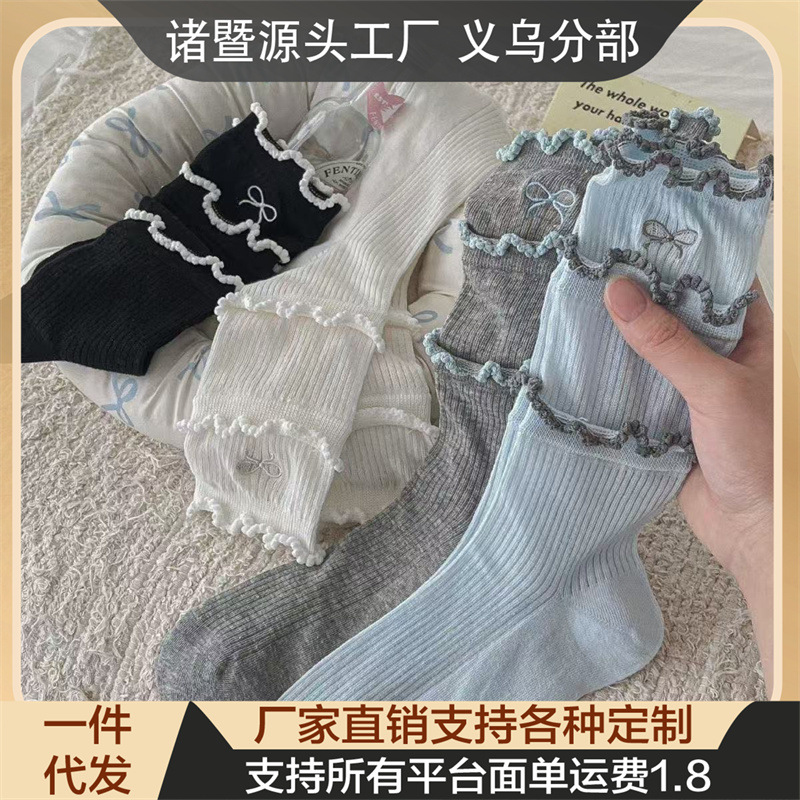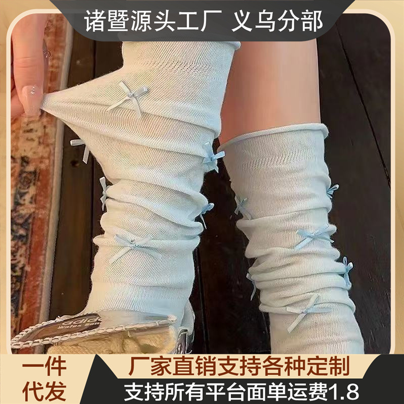 秋季日系芭蕾miu系洛丽塔堆堆袜氛围感少女蝴蝶结蕾丝中筒袜子女