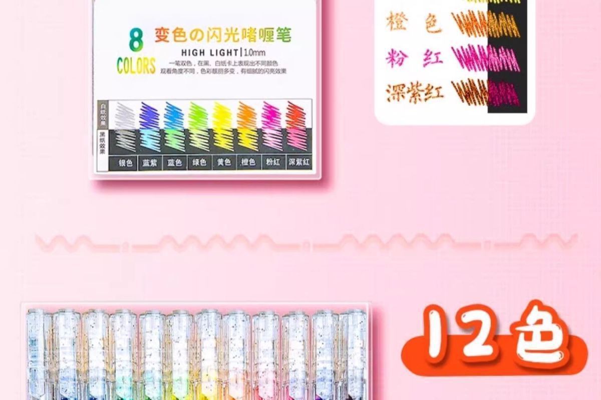 彩色闪光笔啫喱发光亮晶晶流沙银光变色做手账的手帐专用珠光标记