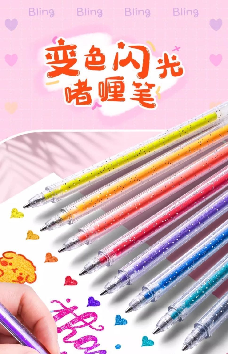 彩色闪光啫喱笔高颜值儿童用变色星星闪光笔亮晶晶彩色手账中性笔
