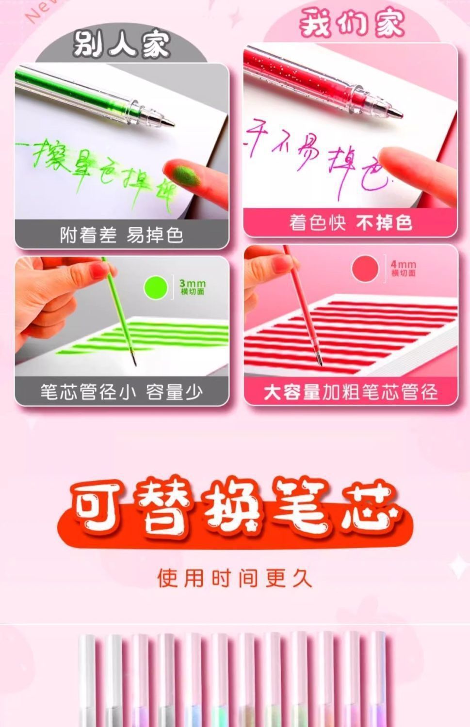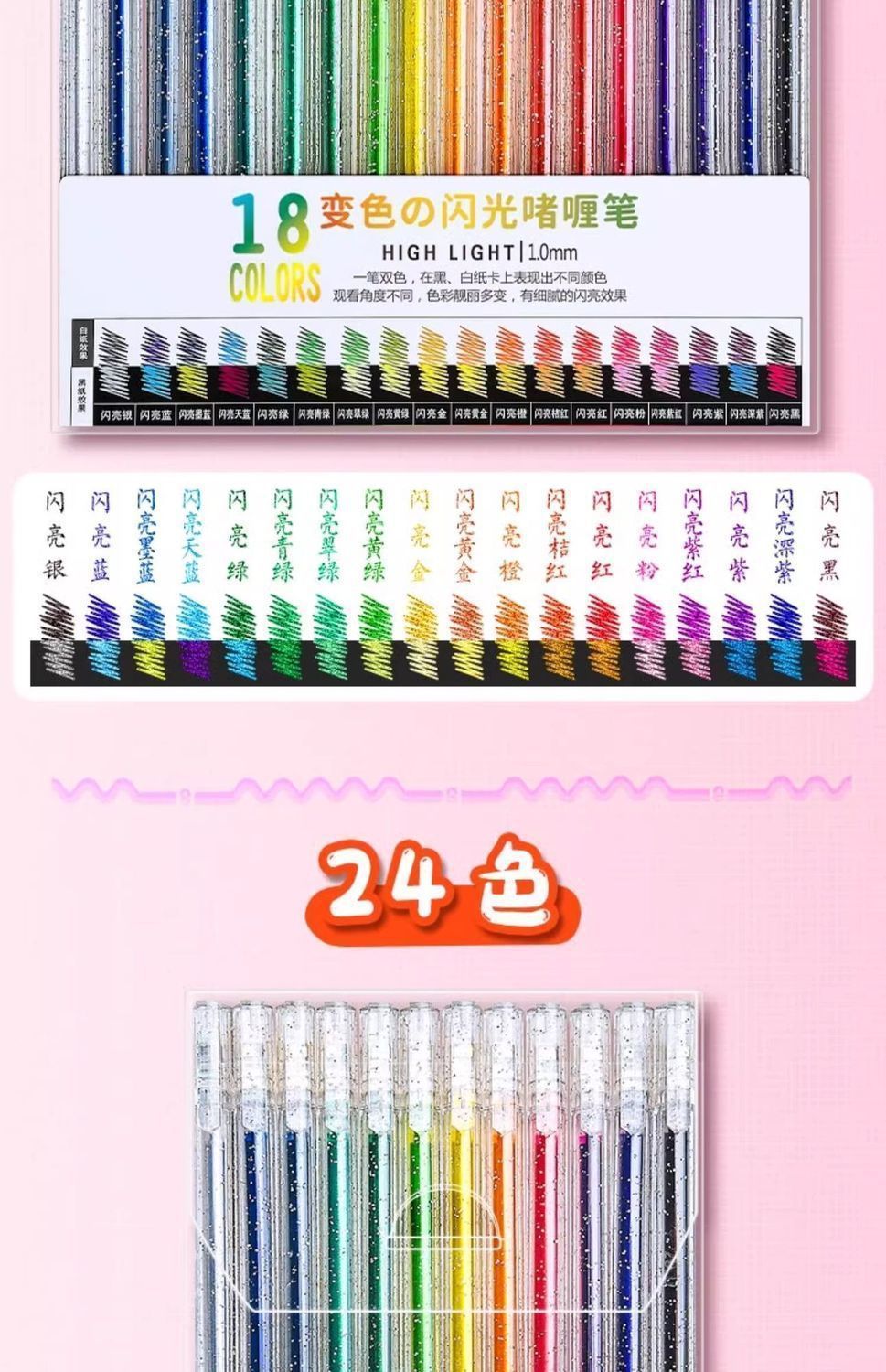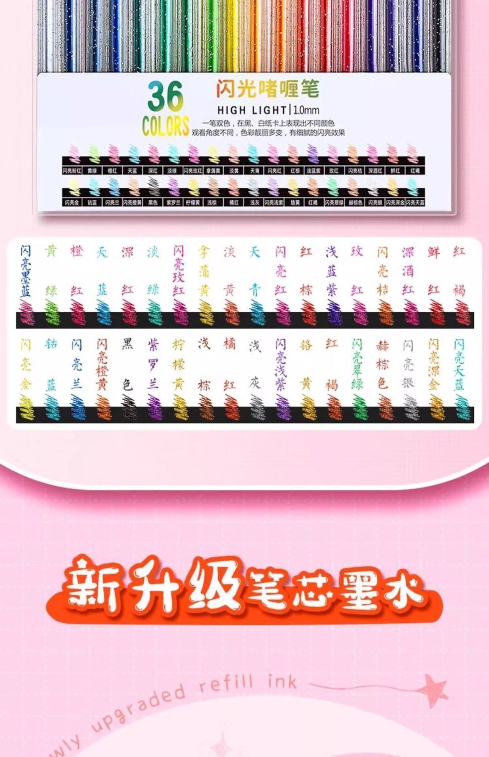 笔芯颜色 炫闪啫喱笔(48色)全套旗舰,炫闪啫喱笔(36色.)80%顾客选择,炫闪啫喱笔(24色),炫闪啫喱笔(18色),炫闪啫喱笔(12色),笔芯(8色)