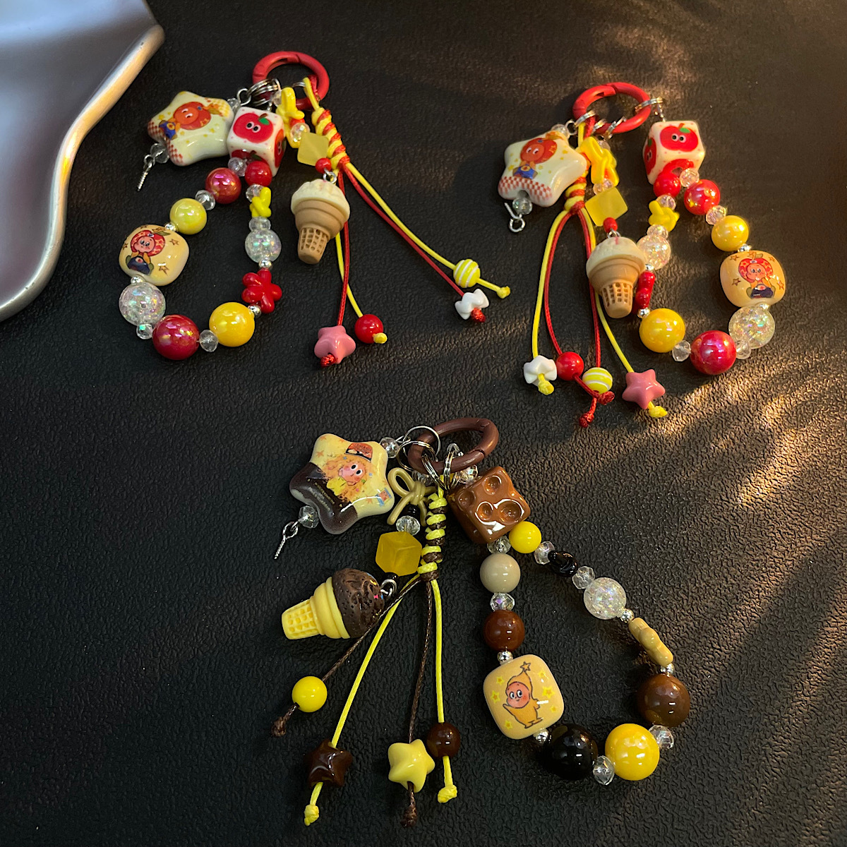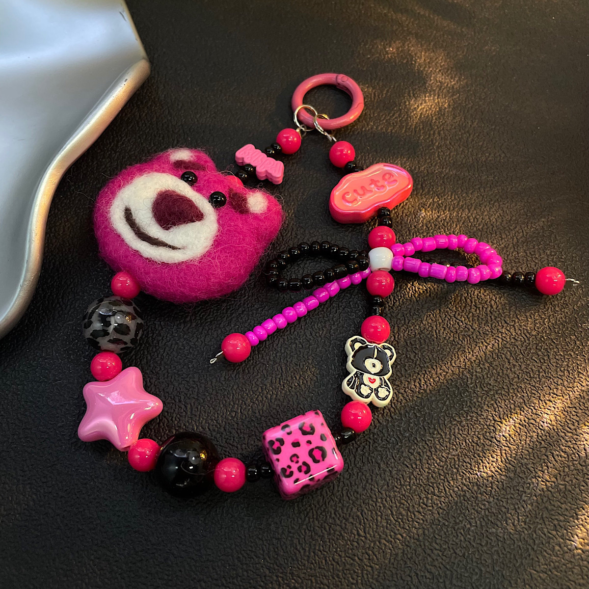 串珠卡通可爱手机链条毛绒包包挂绳挂件挂链挂饰ins