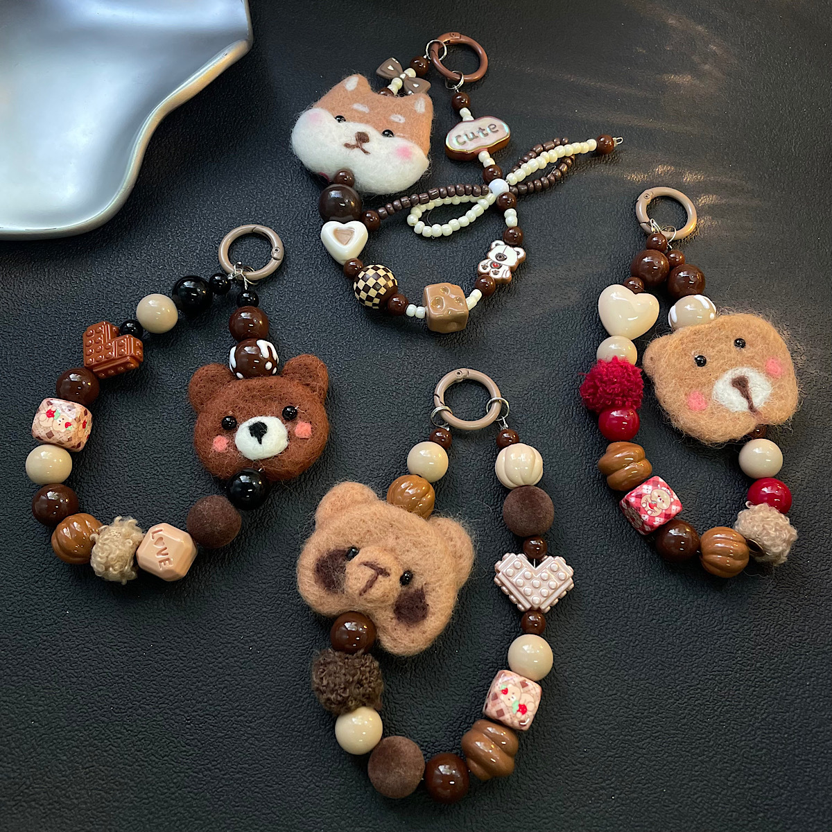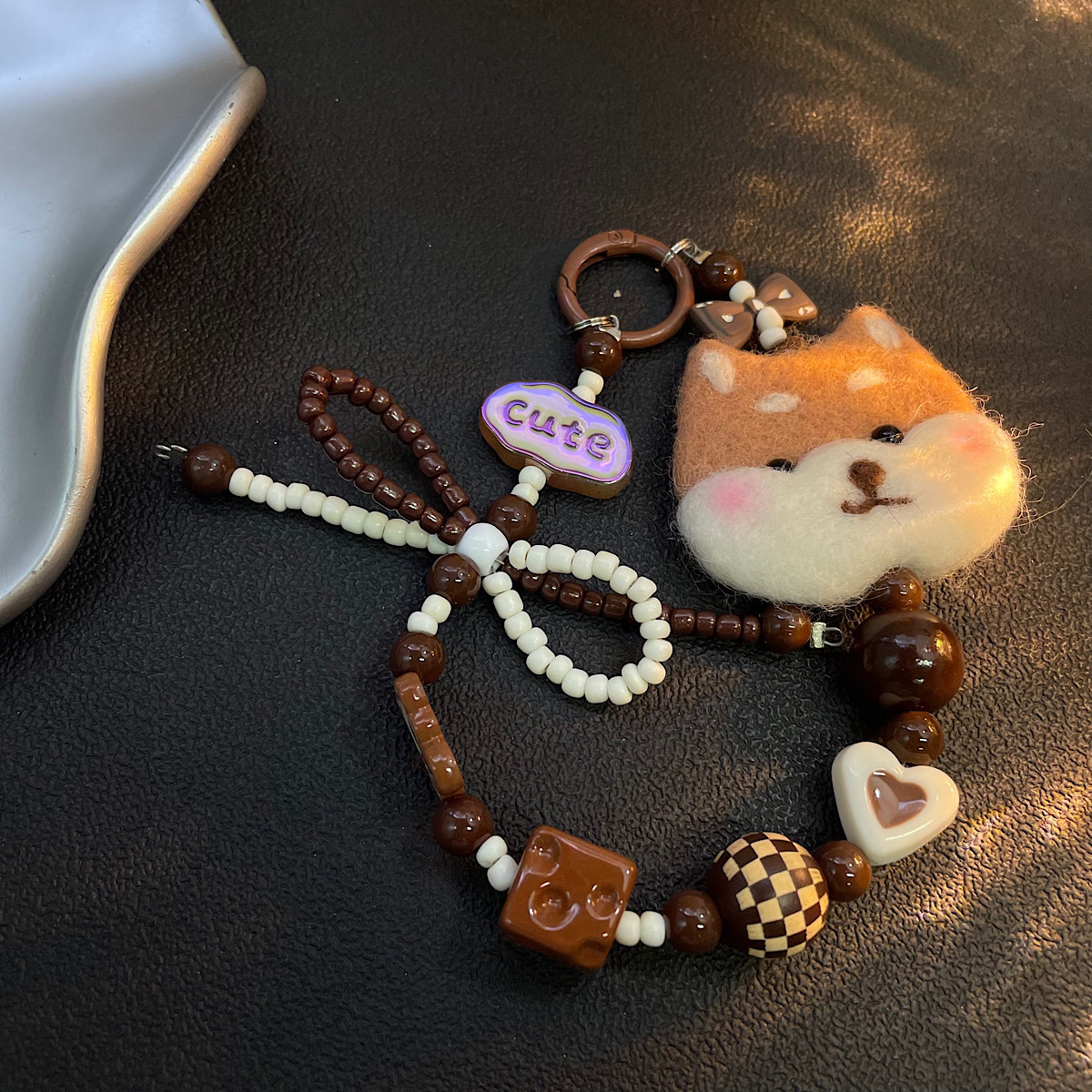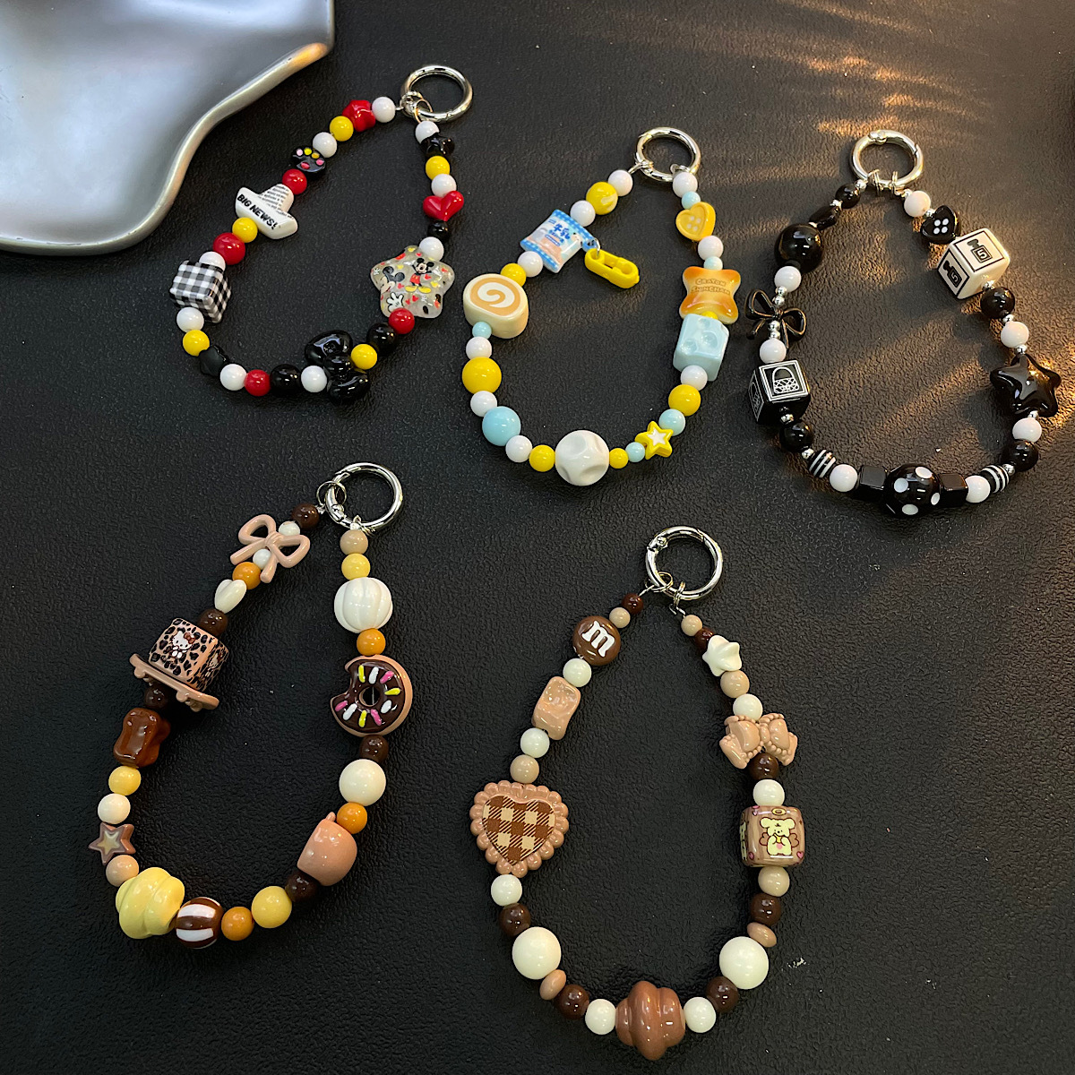 原创个性创意咖色串珠手提链手腕短挂绳手机壳汽车钥匙扣包包挂件