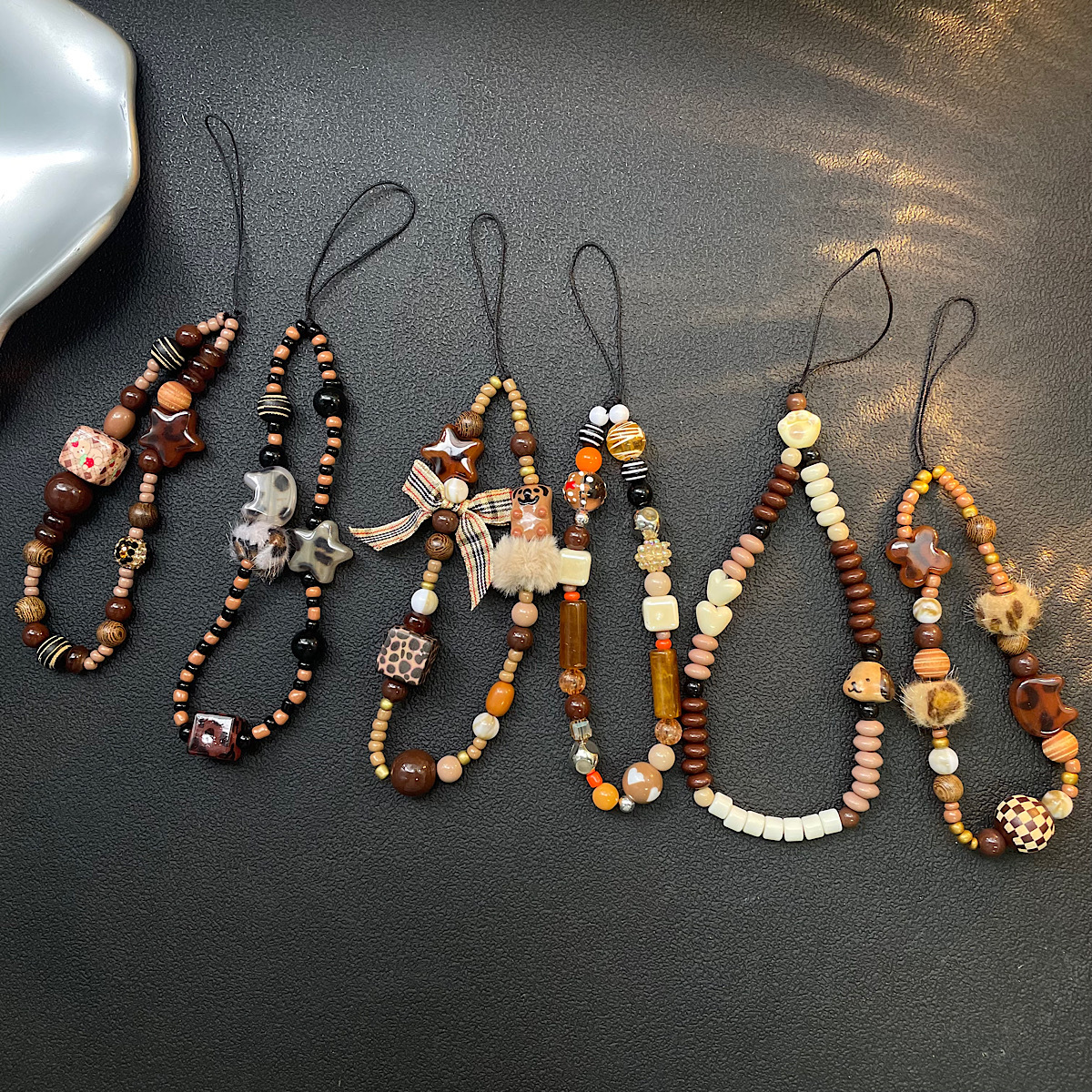 复古美拉德手机链棕色异形串珠挂链手腕式手链斜挎背带时尚高级