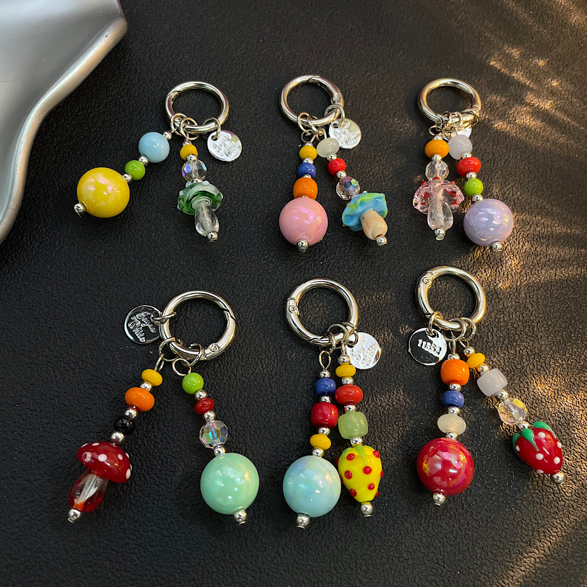 彩色圆形珠子蘑菇透色波点车钥匙扣手机壳挂件书包挂件装饰