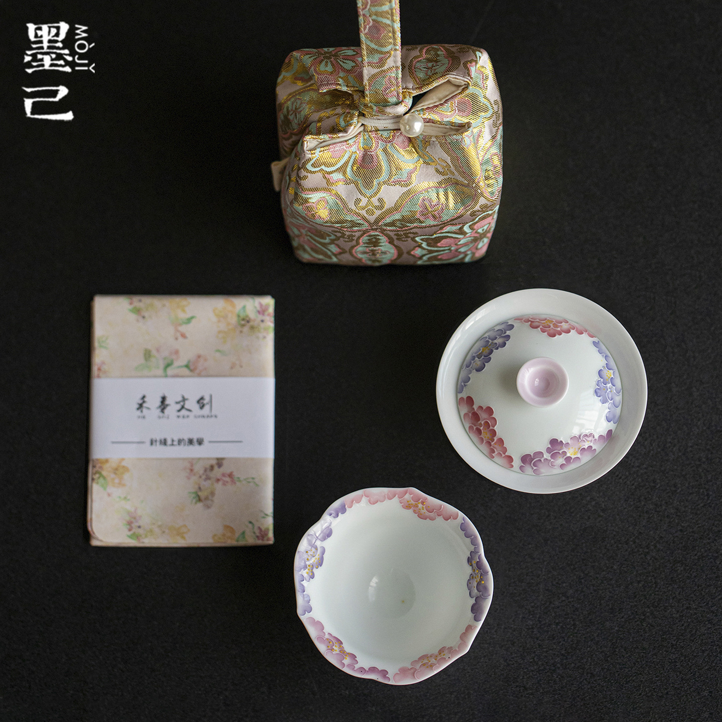 墨己茶事包收纳旅行茶具便携装户外茶具闺蜜礼物一盖碗两杯套组