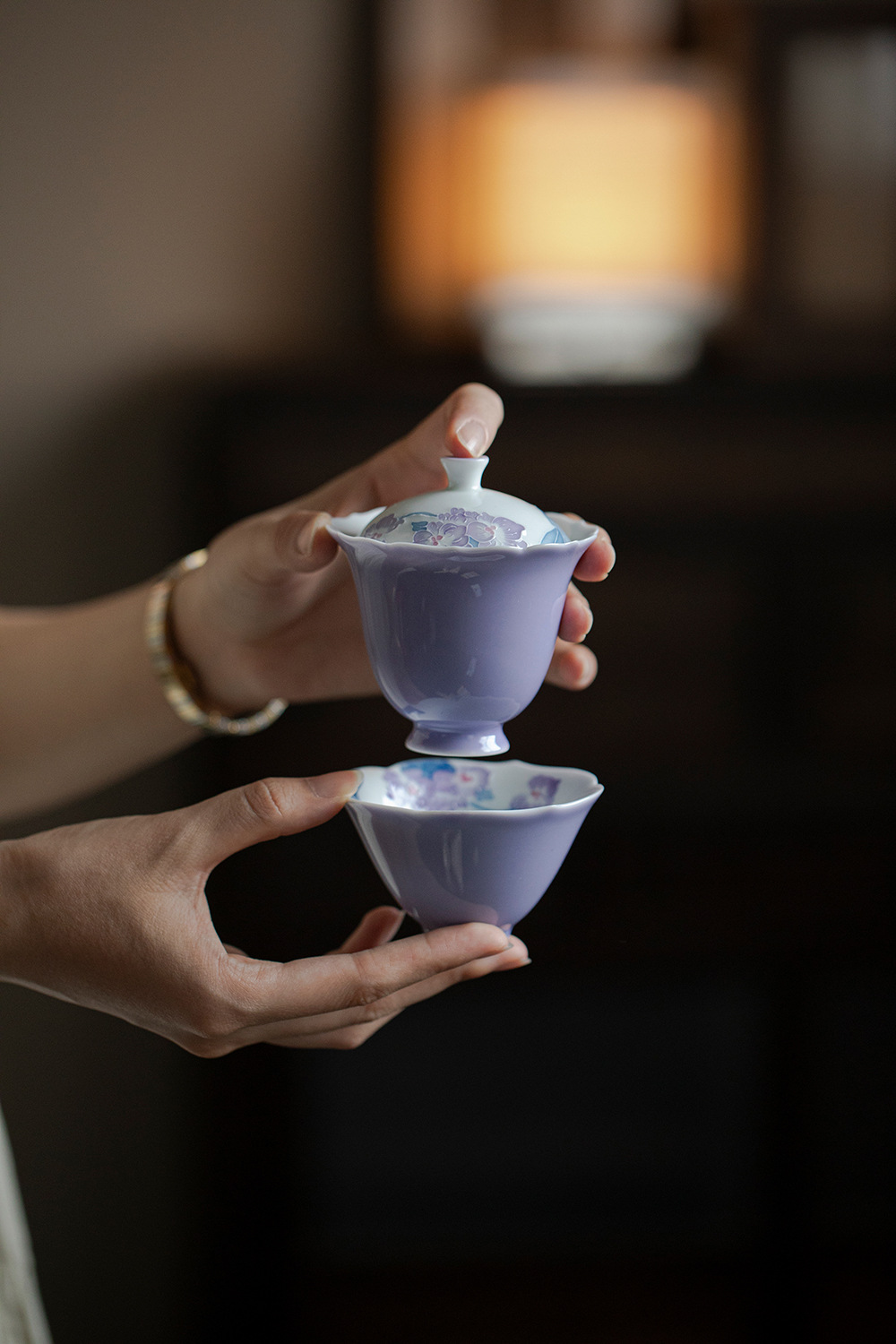 墨己玉泥雲饒紫藤手描き工夫茶器陶磁器蓋碗茶壺承茶道部品合集