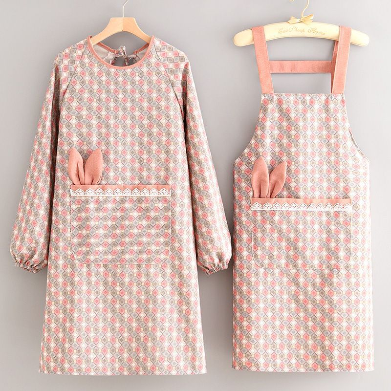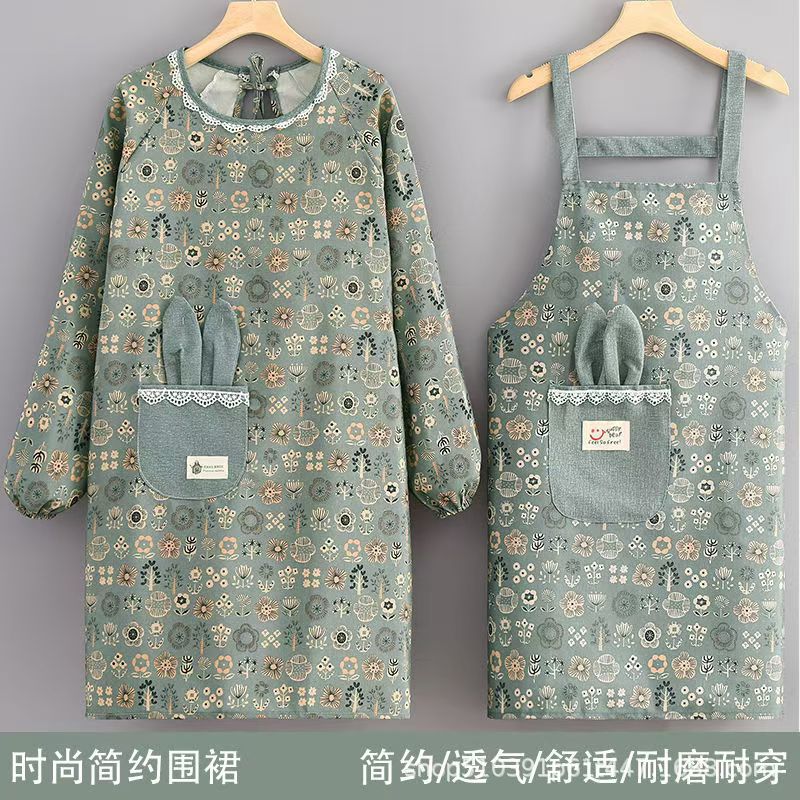 長袖ウサギスモックキャンバスエプロンキッチン調理女性の新しいファッション韓国スタイル通気性作業服ホームエプロン