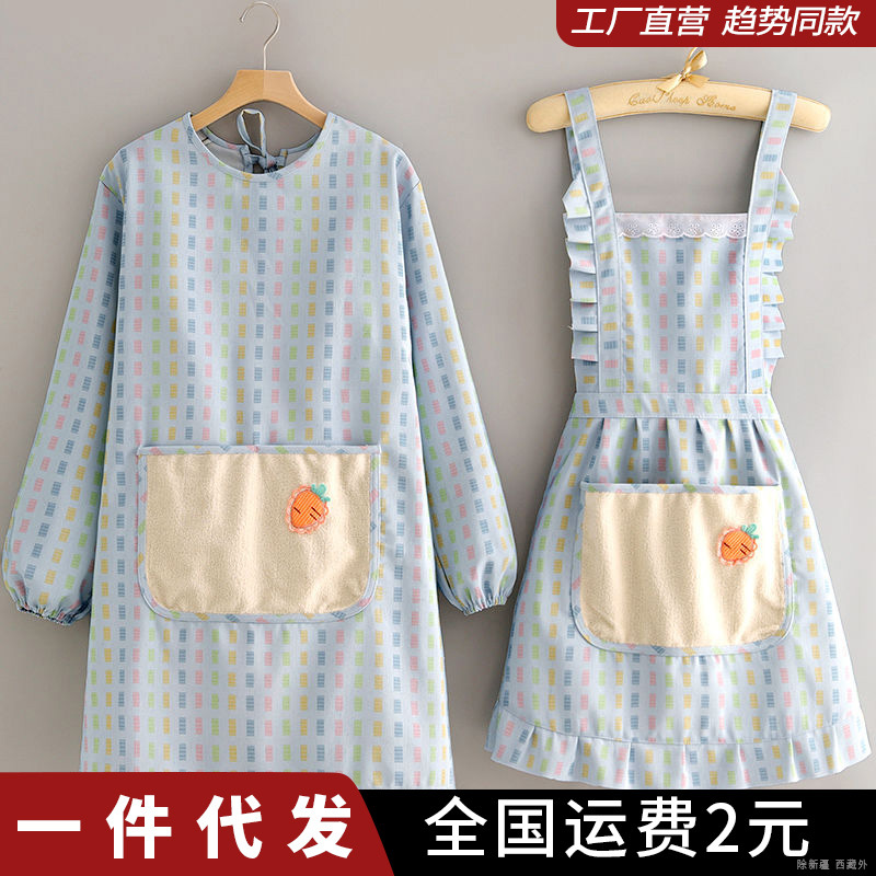韓国版新型純綿エプロン女性キッチン家庭料理油防汚かわいいカバー耐摩耗性2a