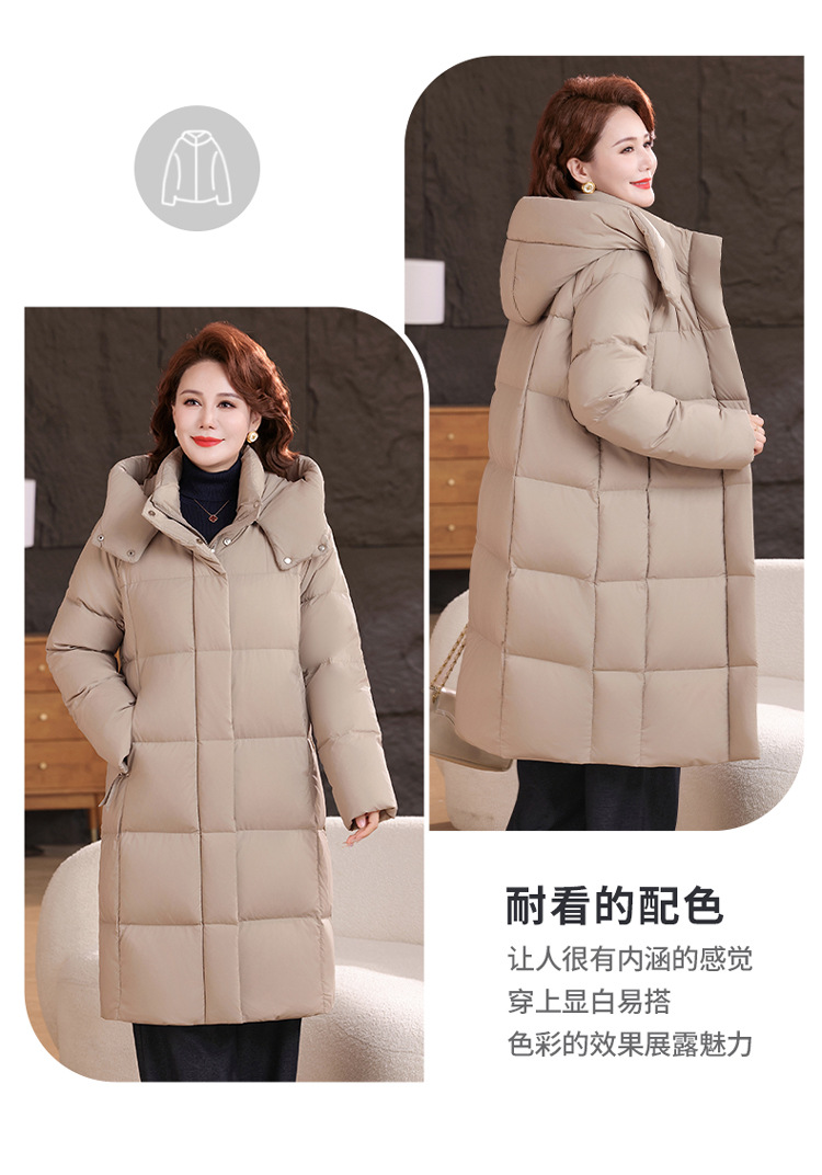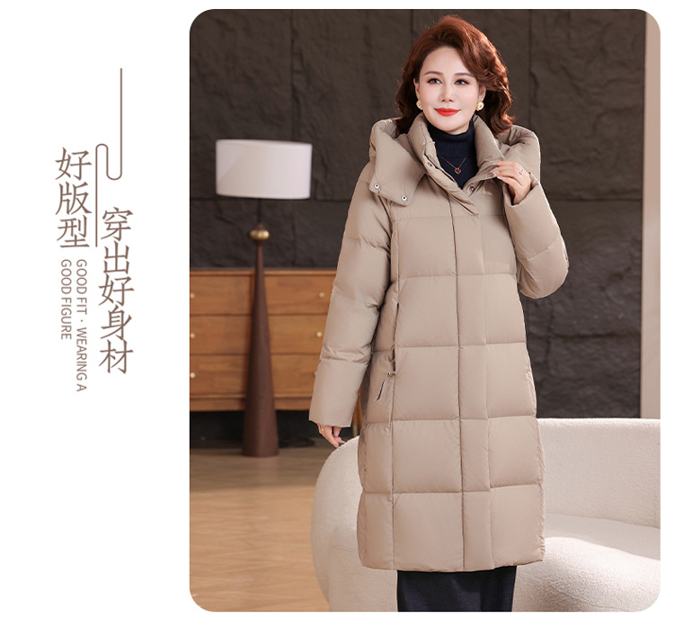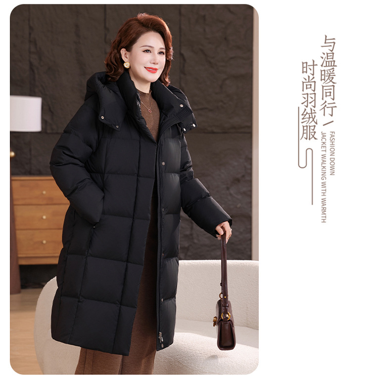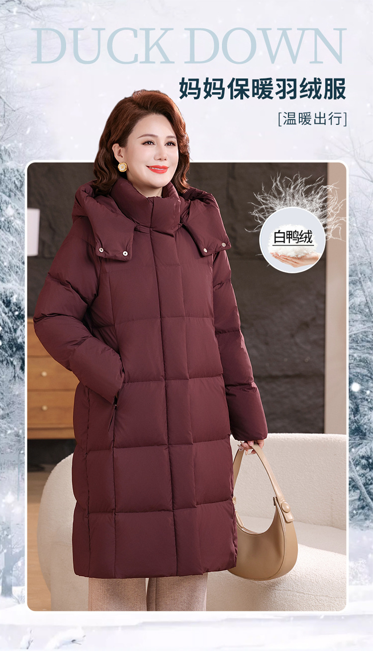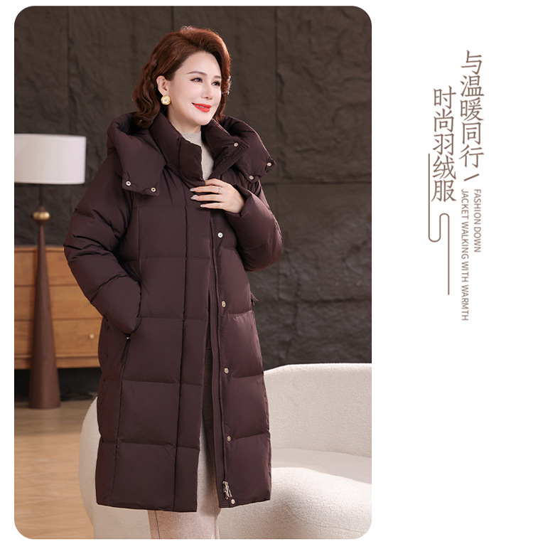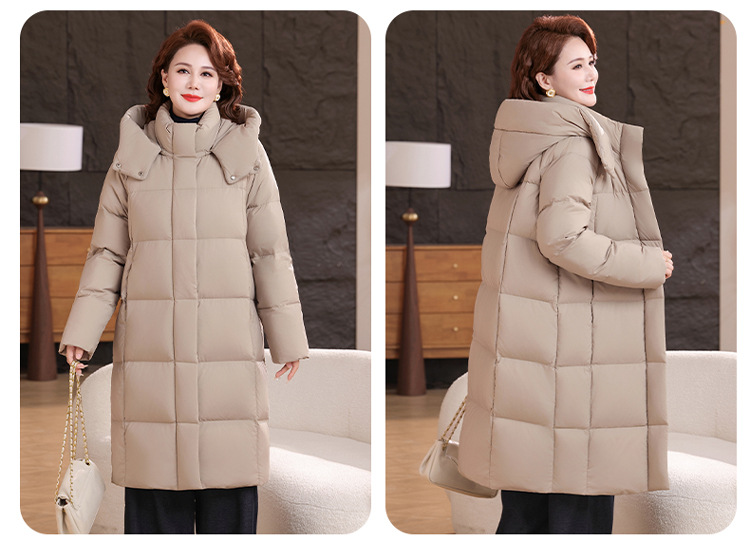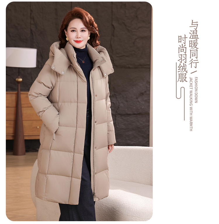 2025新型のお母さんの中の長いタイプのダウンジャケットの女性の冬服の洋風の中年の女性の白鴨の絨毯は厚い保温のコートを着ます。