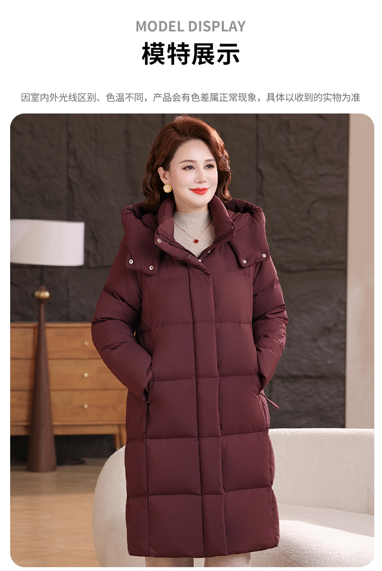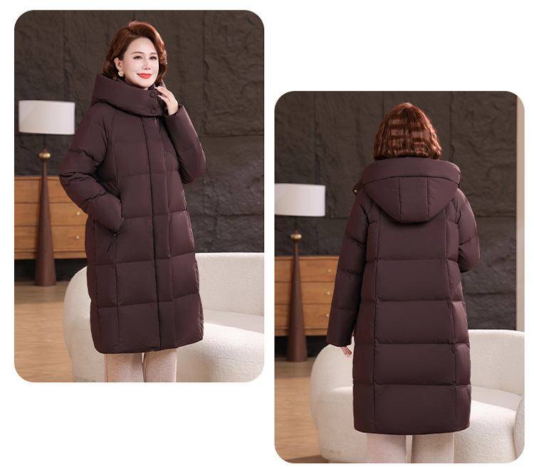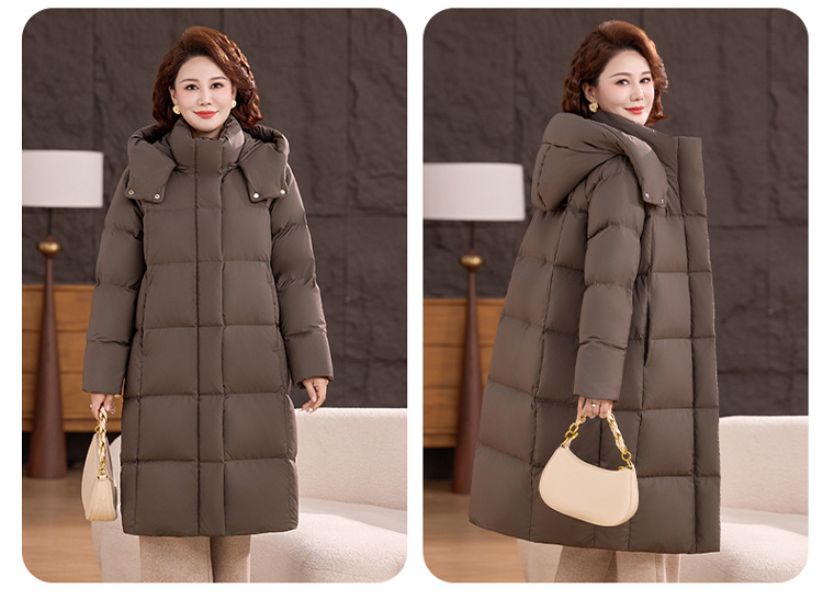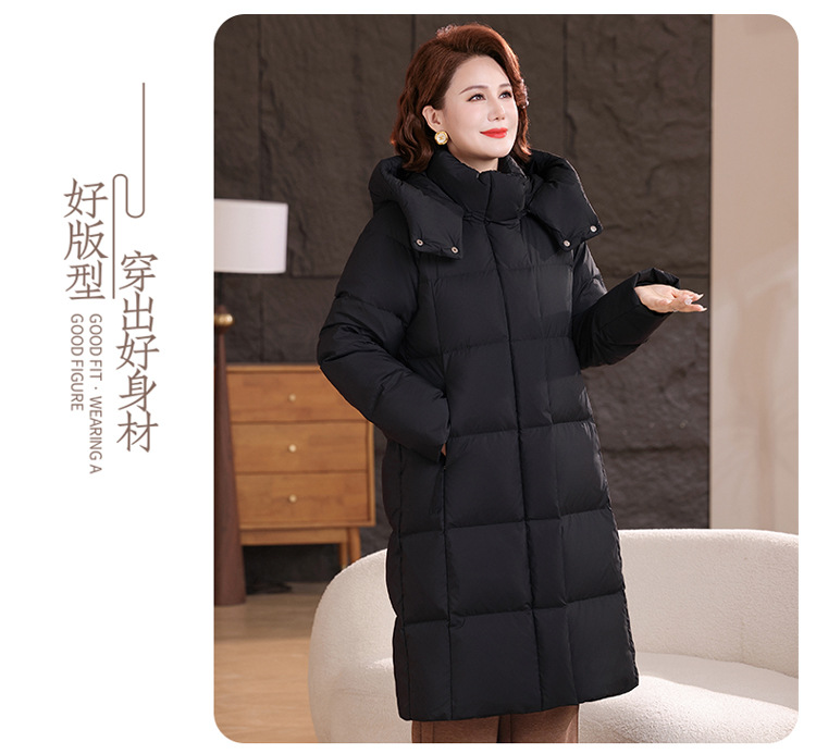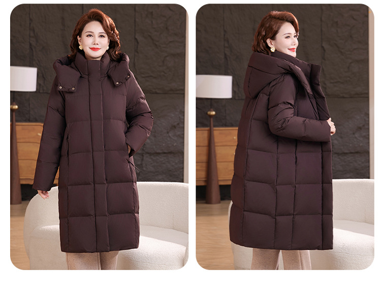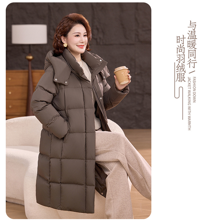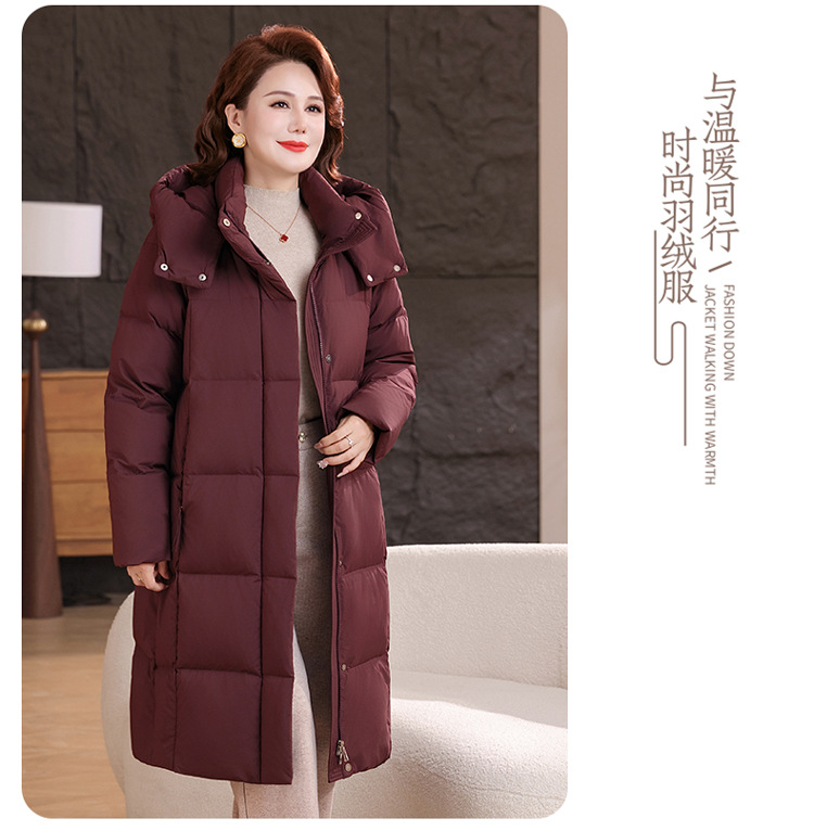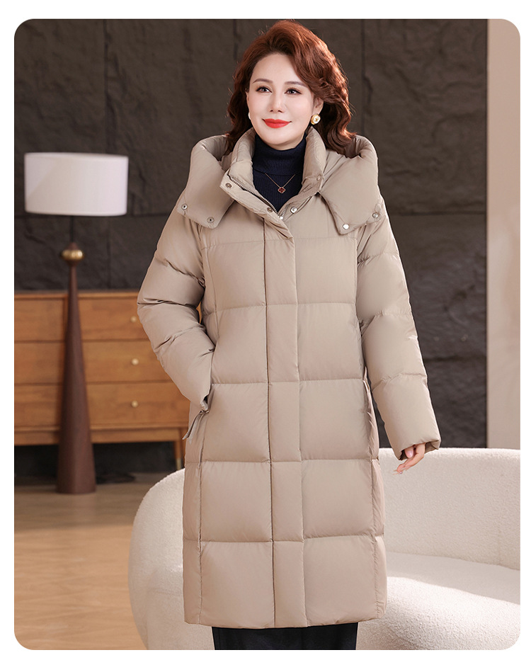 2025新型のお母さんの中の長いタイプのダウンジャケットの女性の冬服の洋風の中年の女性の白鴨の絨毯は厚い保温のコートを着ます。