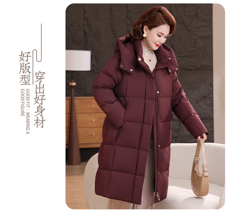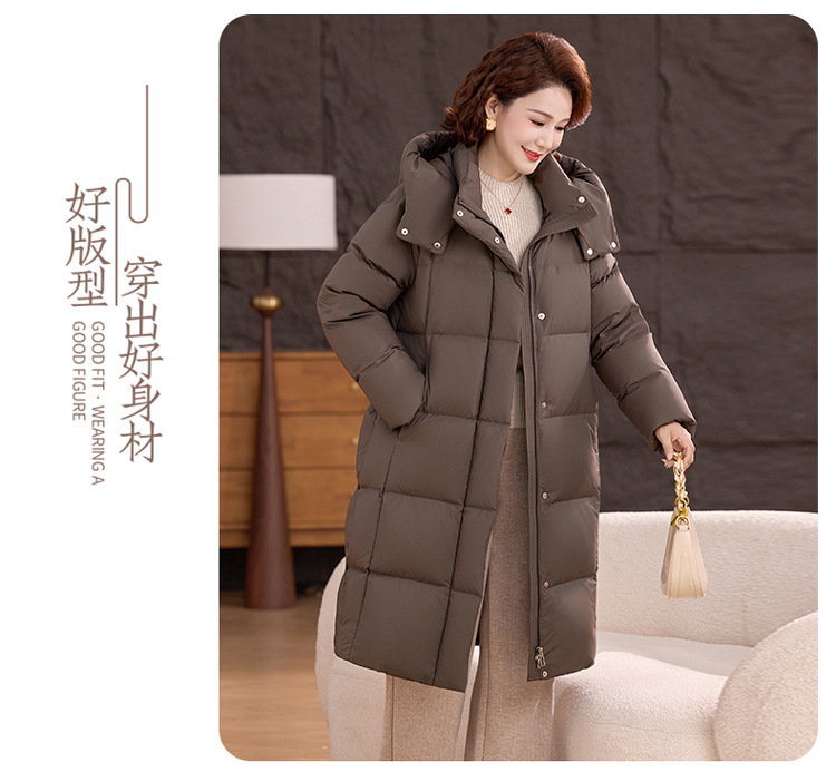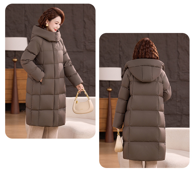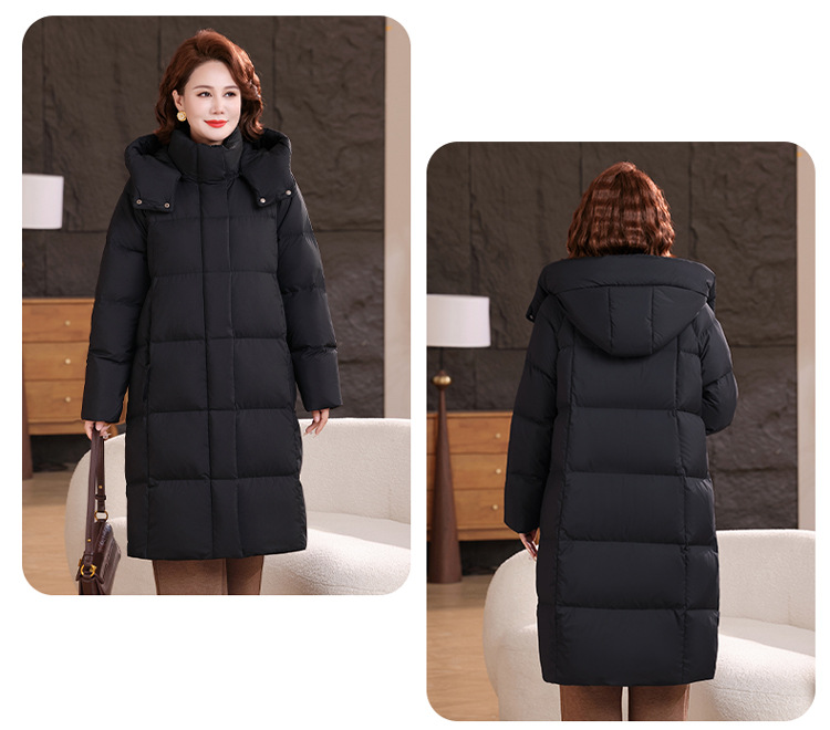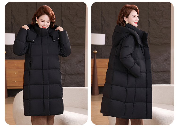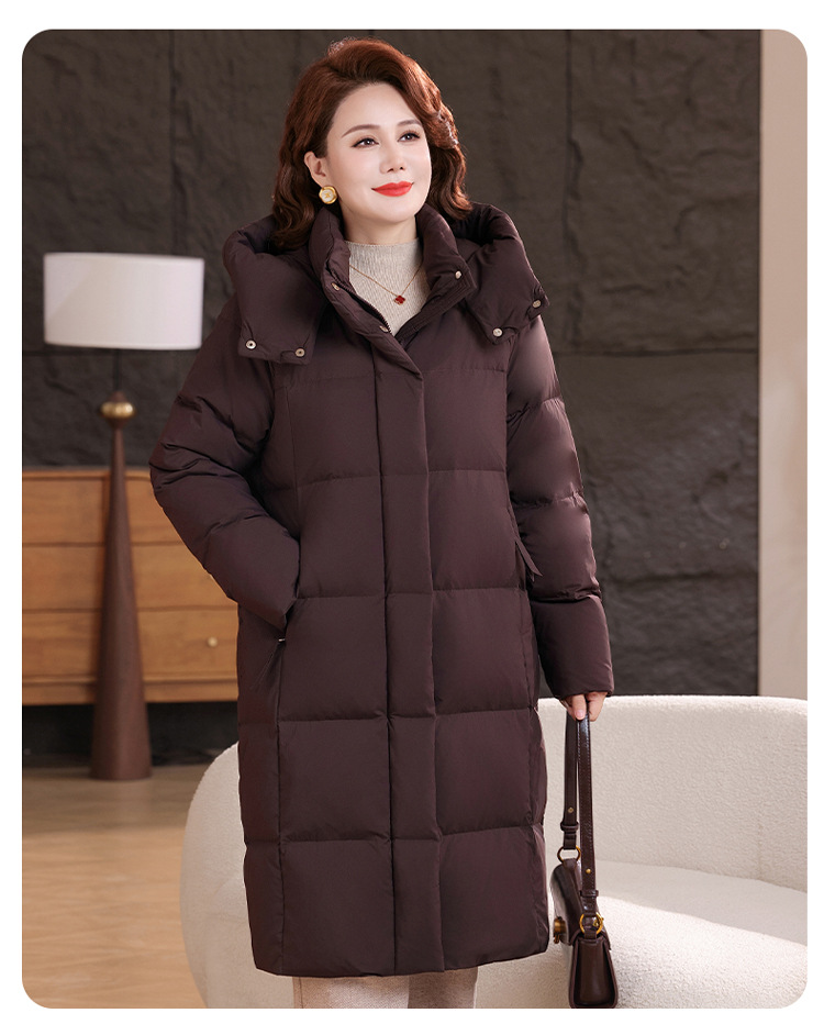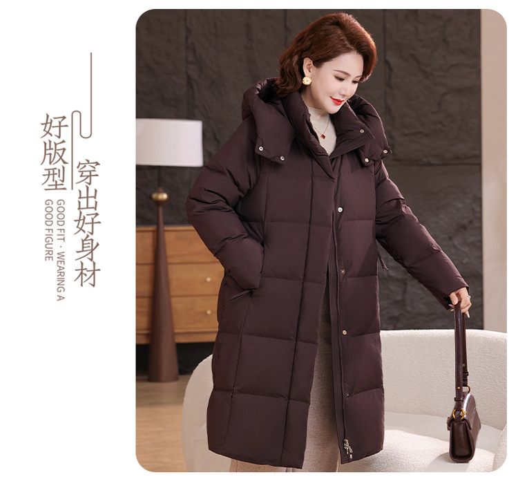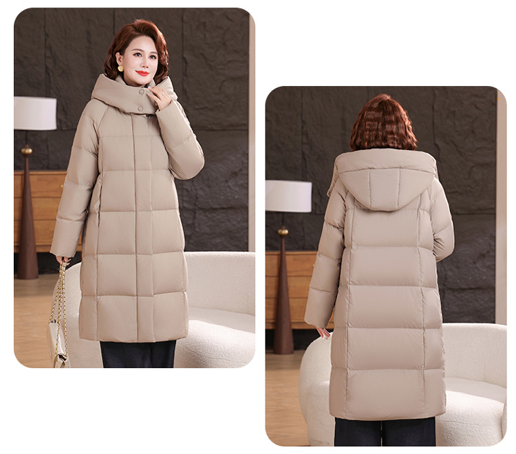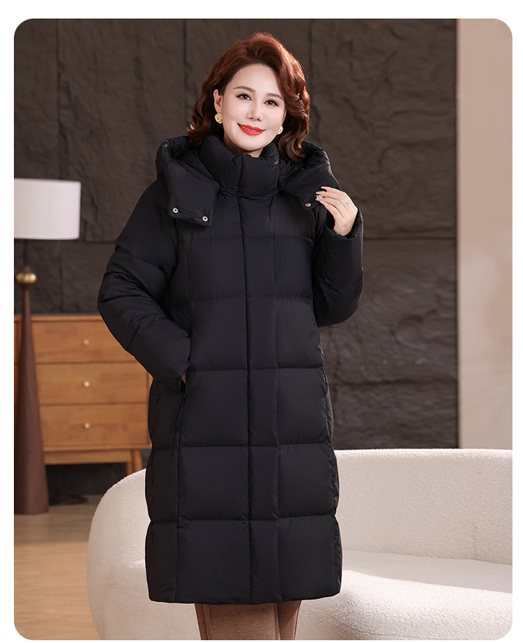 2025新型のお母さんの中の長いタイプのダウンジャケットの女性の冬服の洋風の中年の女性の白鴨の絨毯は厚い保温のコートを着ます。