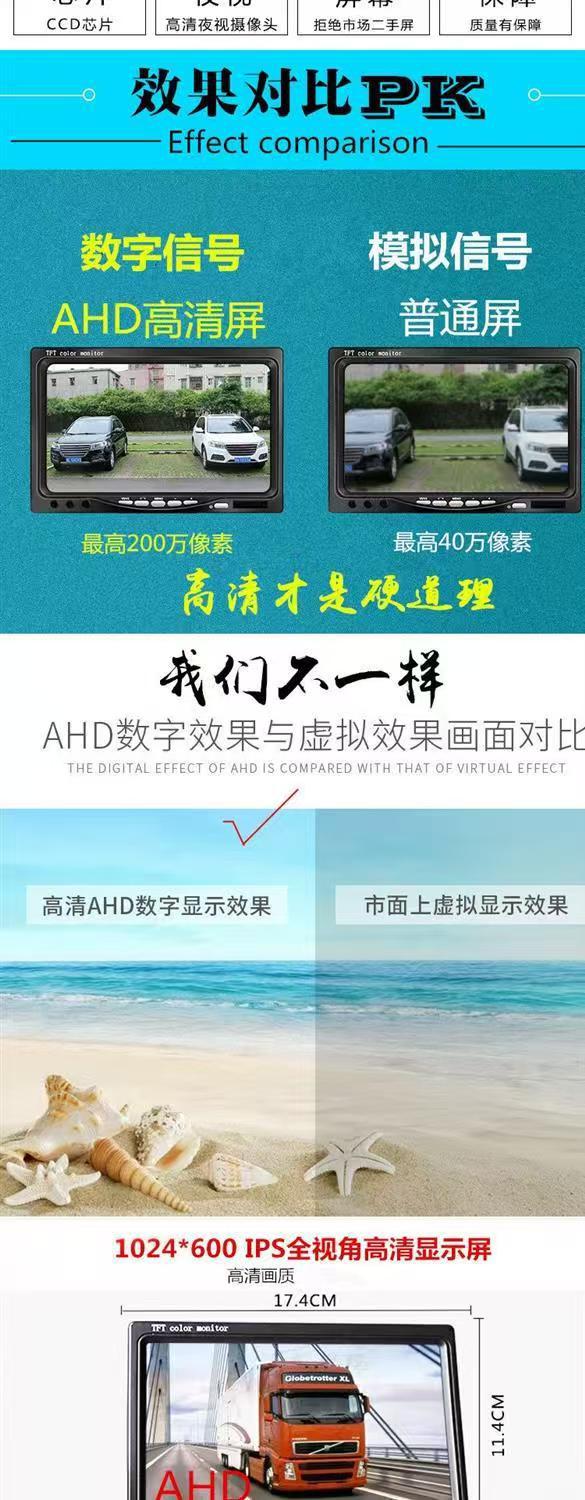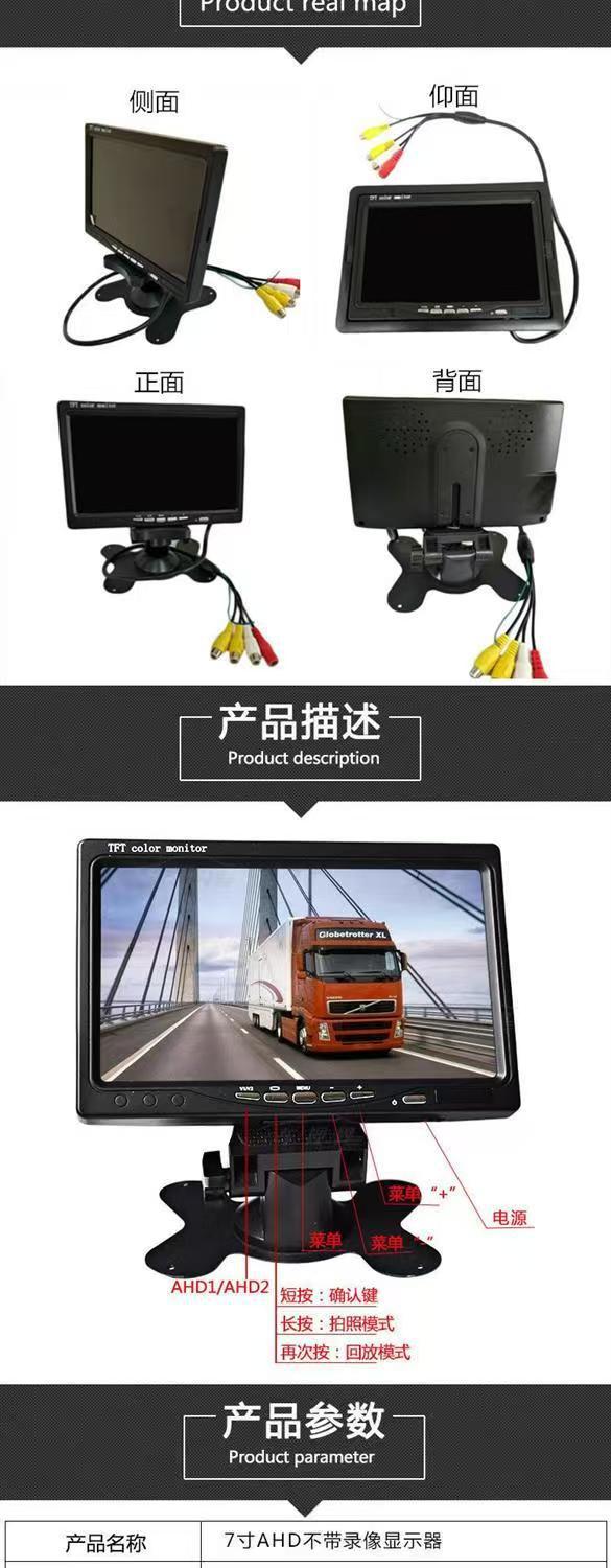 7寸AHD莲花头(IPS正)显示屏车载后视720P1080P