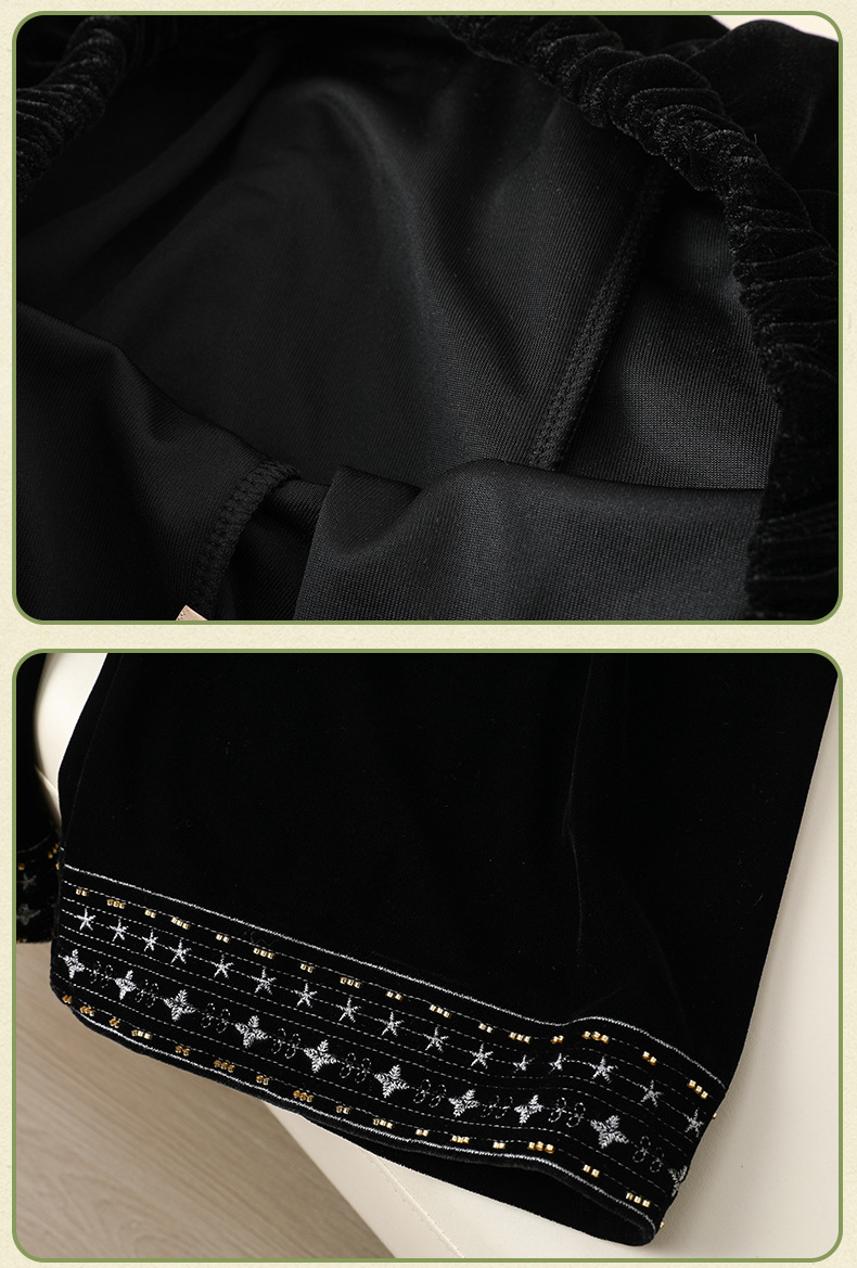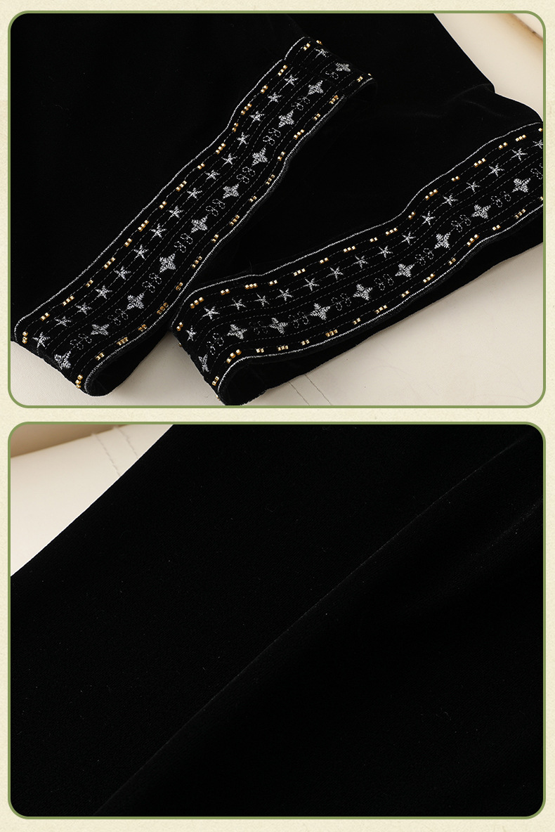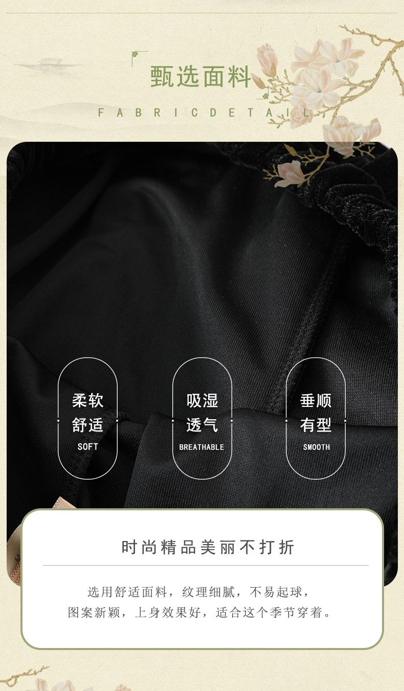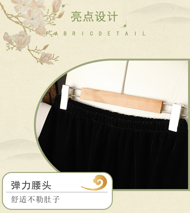 简约百搭黑色丝绒直筒裤女洋气绣花中式国风长裤秋装显瘦遮肉裤子