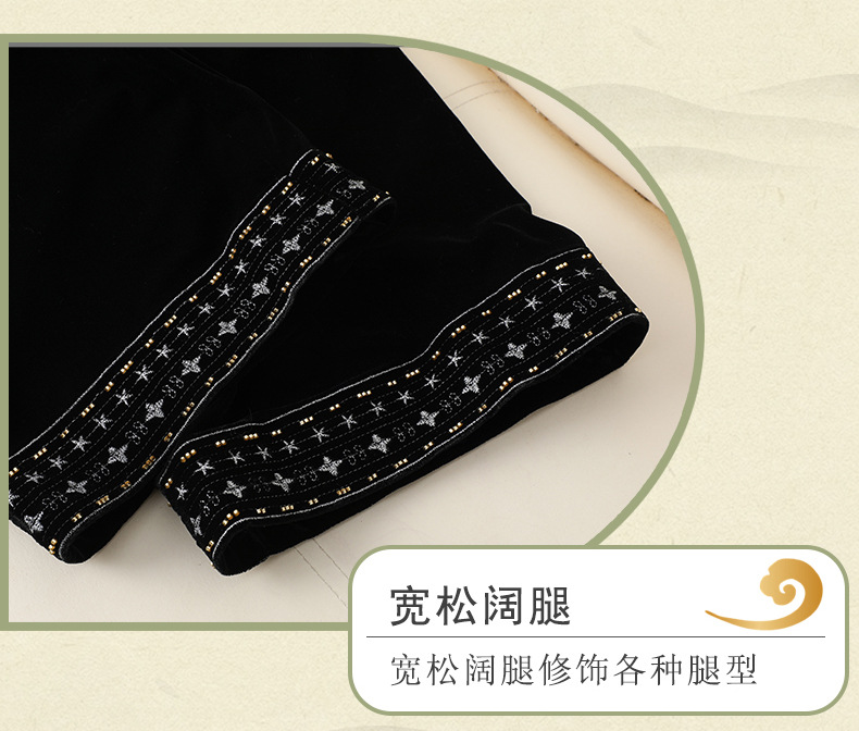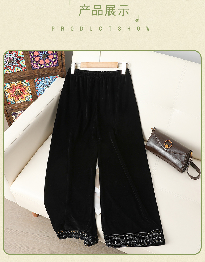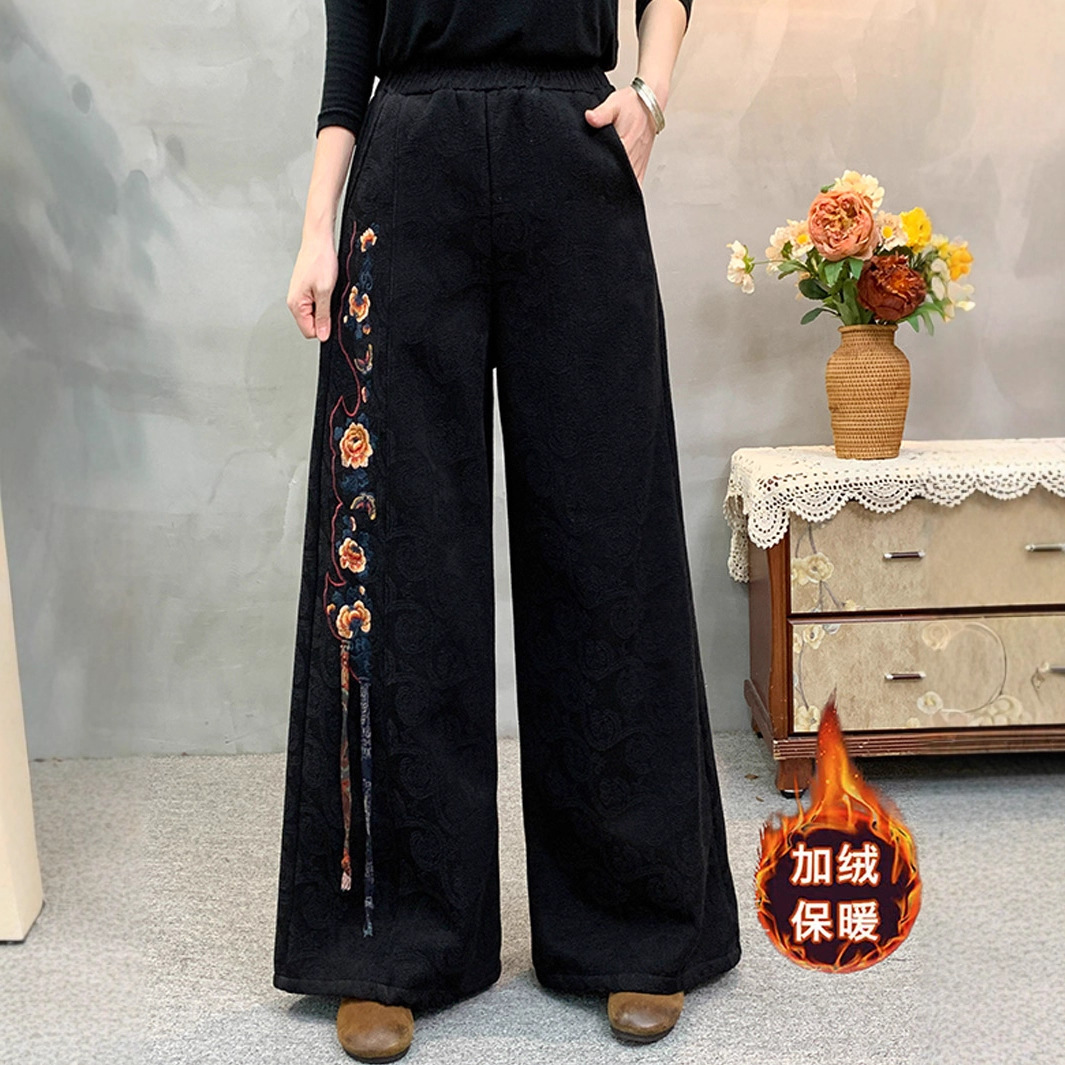中年妈妈冬装洋气阔腿裤民族风2025新款春秋装长裤加绒加厚休闲裤